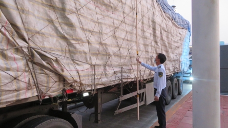 6月17号19点左右,固安东收费站收费员张永栓正在进行发卡作业时,三辆六轴货车准备上道,收费员发现三辆货车均装载过高,经询问司机得知车身高度达到了4.4米,属于超高车辆。[详细]