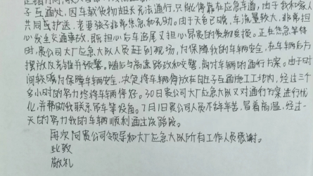 7月10日,保通保畅大厂应急大队收到了来自黑龙江绥化市昌隆运输公司司机王先生的感谢信。信中对廊坊分公司保通保畅大厂应急大队辛勤付出、任劳任怨的工作和为民服务的精神表示衷心感谢。 据悉,6月29日,大厂应...[详细]