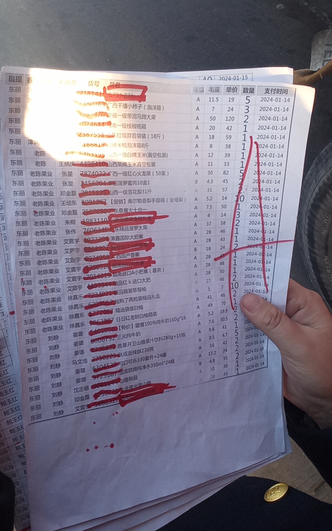 刘星赶到现场后,司机打开车辆后门开始查验。 在查验过程中,刘星发现有两袋不在绿通免费目录内的干大蒜。随即要求司机打开侧门进一步查验。刘星又发现少量甘蔗、榴莲等不在绿通免费目录内的水果,由于司机装载货物比较混乱,不方便查验,刘星随即询问司机是否有运货单,司机拿来运货单后,刘星发现货单上还有薯片,可乐饮料,纯净水等货物,在铁的证据面前,司机承认了自己车辆是给超市配货,还混装了其他非绿通货物。最终司机按照规定全额缴纳通行费44元。