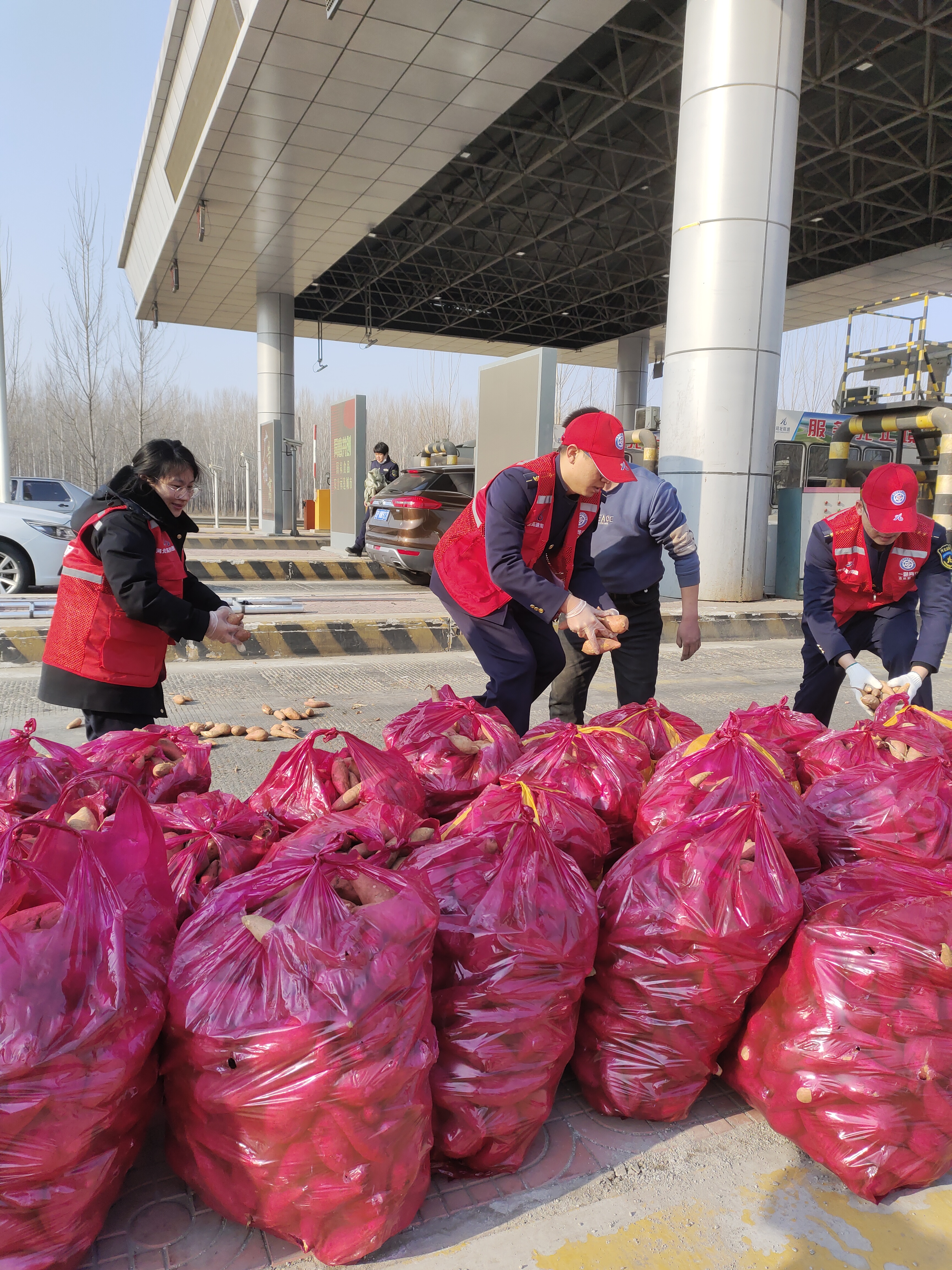 班长经询问司机没有被砸到后,立即关闭该车道,增开车道,随后赶忙跑回车辆后方,与收费人员一起帮助驾驶员将红薯捡拾装袋,搬运到车上,10多分钟后,散落的红薯全部装回车上。“真是太感谢了,没有你们,这几十公斤重的红薯,我一个人搬运还真得费一番功夫。”司机师傅连声道谢后,安全驶离了收费站。