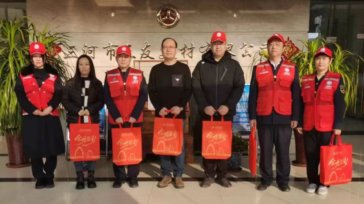志愿者一行首先到达三河市三友建材有限公司,向该企业职工送去了慰问及春节祝福,同时将河北高速集团“新春大礼包”发放给职工,并与企业负责人亲切交谈,了解该企业的运力情况、主要行驶路线、淡旺季规律,出行服务需求等,建立互动关系,加强联动机制。