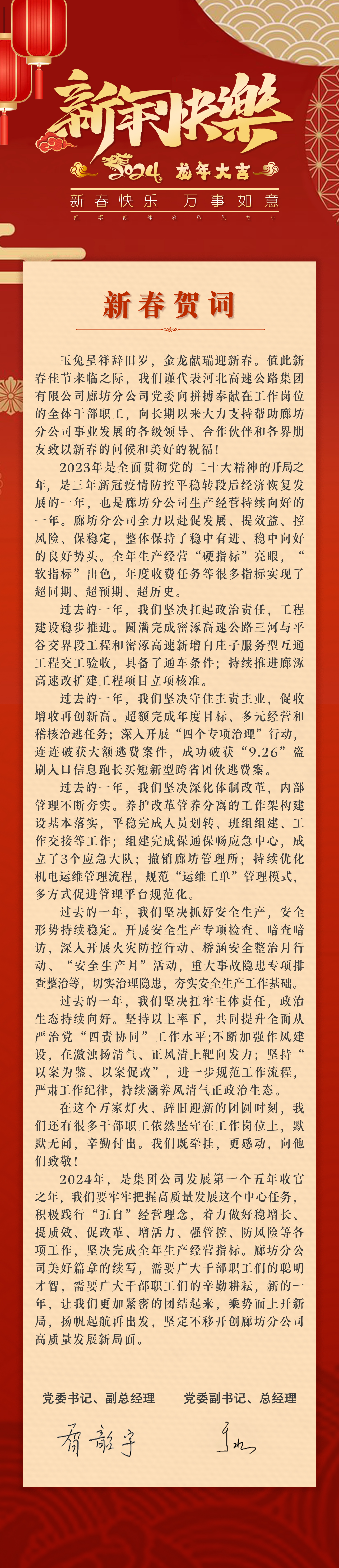 廊坊分公司2024年新春贺词