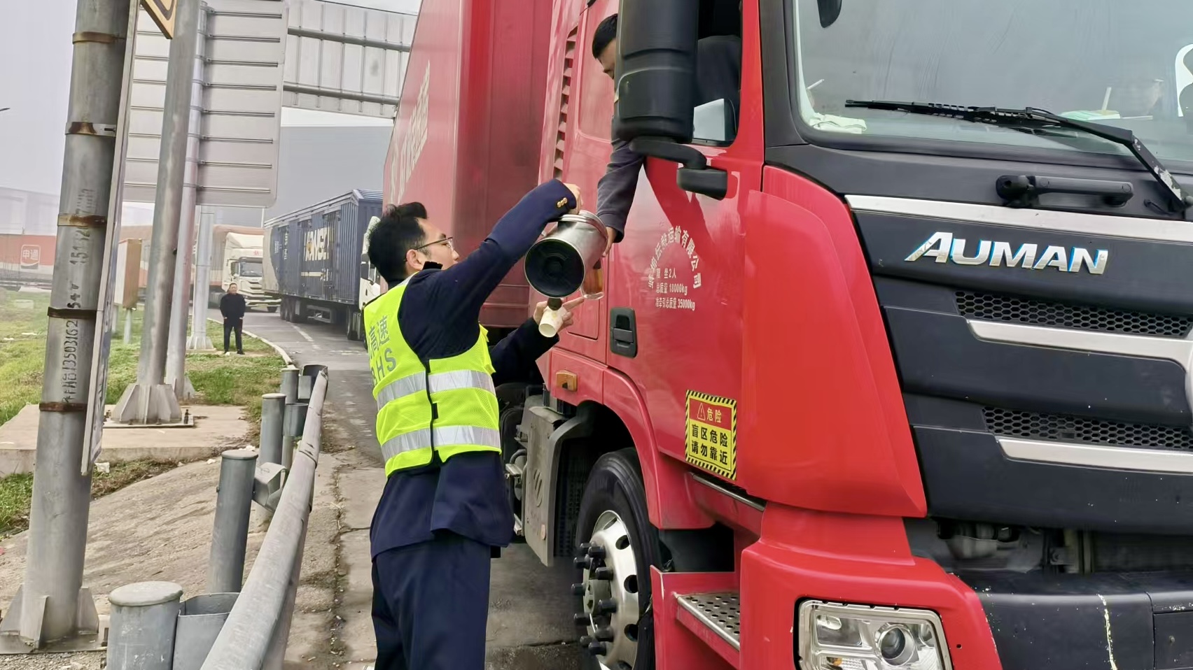 虽然天气寒冷,但一杯杯热水和一声声关切问候驱散了司乘人员们心里的寒意,让各位司机朋友们感受到了浓浓暖意。东湾收费站始终秉承“服务无止境”的服务理念,致力于为过往司乘营造一个温暖、舒适、畅通的通行环境。
