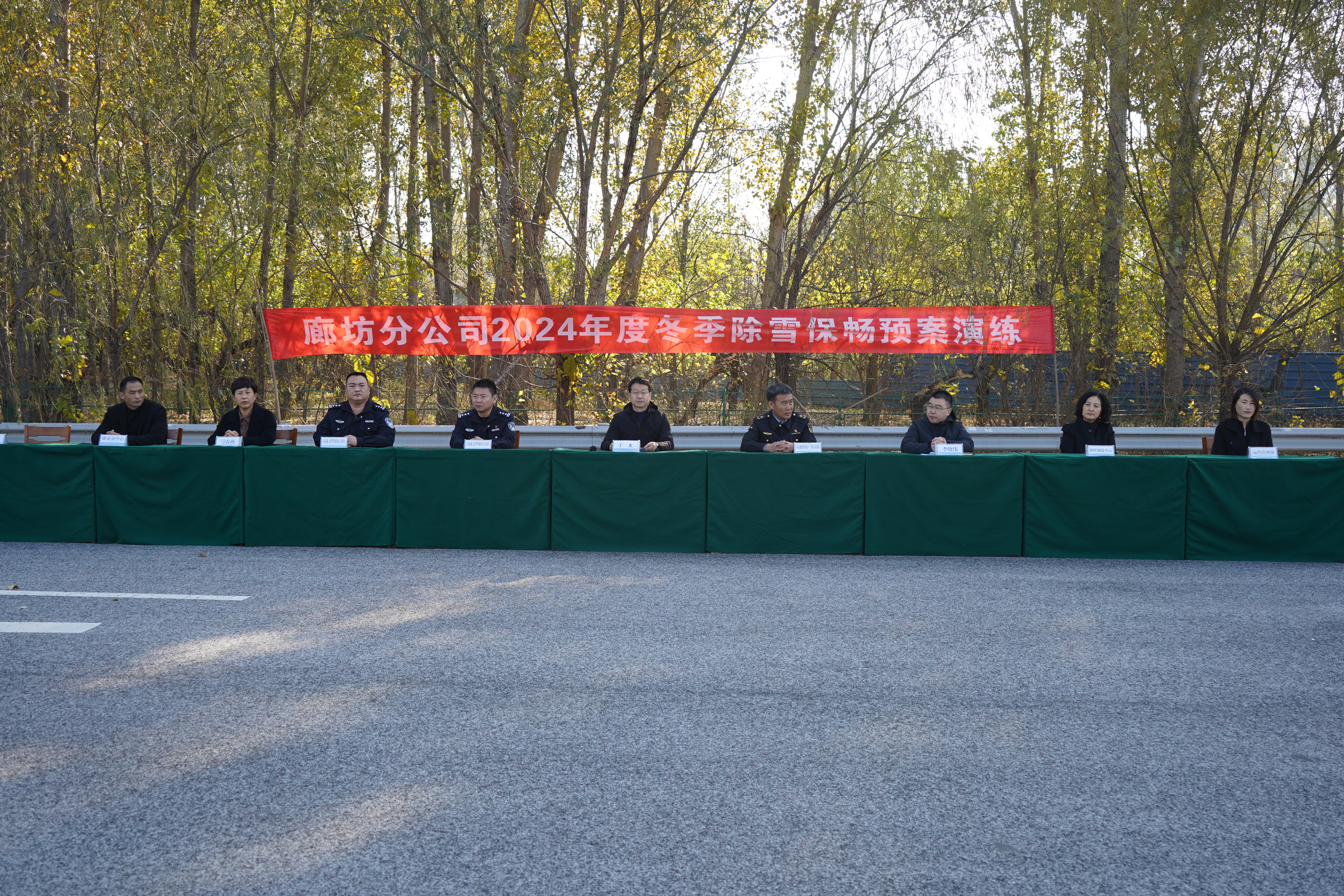 11月6日,廊坊分公司联合河北高速交警廊坊支队廊坊大队大队长安占林、固安大队副大队长郭红军、河北高速路政廊坊支队广阳大队大队长卢迎华、养护分公司雄安分中心九州养护队队长梁建国,由廊坊分公司广阳保通保畅应急大队组织实施,开展2024年度除雪保畅应急演练。廊坊分公司党委副书记、总经理于水、副总经理弓春燕、李晓伟一行到现场观摩督导。