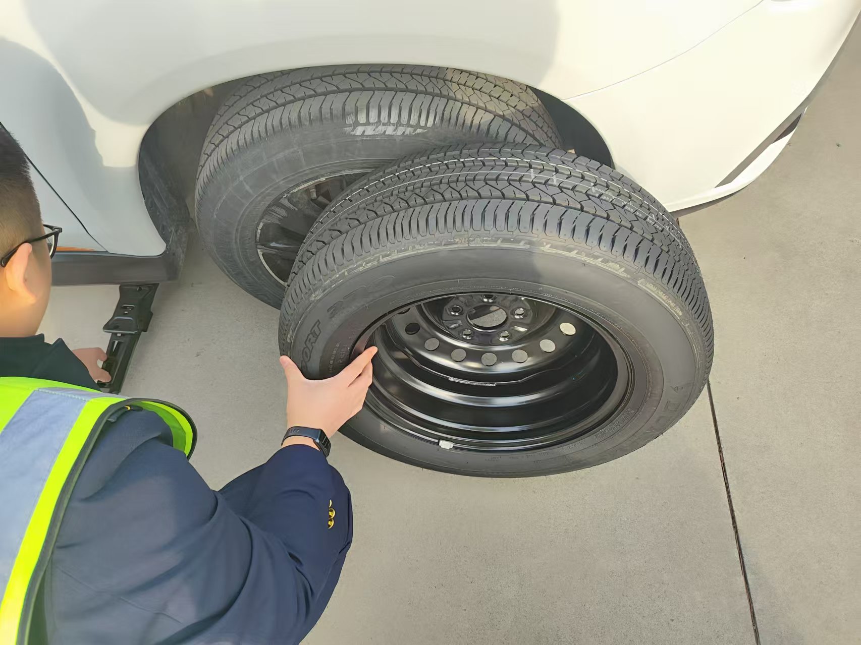 11月17日下午,一辆白色越野车驶入蒋福山收费站入口车道,收费员发现该车行驶异常疑似爆胎,收费员急忙告知司机该情况并通知班长处理,班长迅速赶到现场。为保障站口畅通,班长指挥司机将车辆行驶到收费站外广场安全地带,并摆好反光锥警示后方来车。班长主动上前帮忙更换轮胎,熟练地操作短时间内就换好备用轮胎,司机和乘客对收费班长表示了衷心的感谢。班长提示司机高速公路行车速度快,用车前需做好车辆检查,避免危险发生。