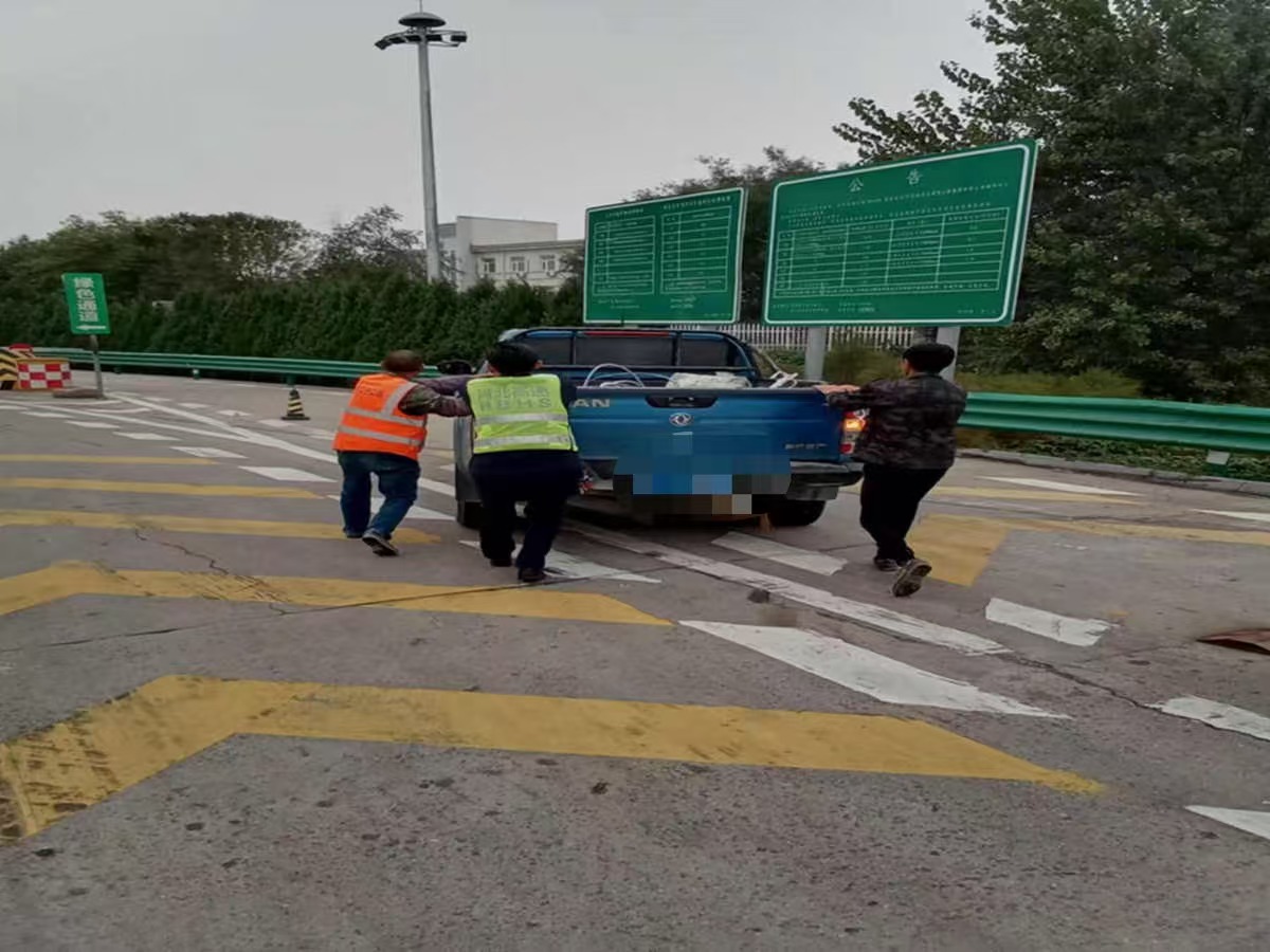 11月20日下午1点左右,固安东收费站收费员收费作业时发现收费内广场有一辆蓝色皮卡一直没有动,立即通知班长上前询问情况。得知该车在距离收费站3公里左右处车辆就显示没油并熄火了。由于车上都是岁数偏大的外地务工人员,没有其他办法,几人费力推车至固安东收费站广场实在没有力气继续了。班长赶忙提醒司机打开双闪,并示疏导方车辆警惕避让,同时叫来同事帮忙将车至收费站外广场安全区域。随后邀请司乘先到便民服务岗亭休息,并暖心的给他们送来温水。将此情况报告值班站长后,固安东收费站立即派车帮助司机到加油站打油,并协助司机加好油,检查车辆启动后才送别司机离开。离开前嘱咐司机,在高速上推车太危险,再遇到此情况一定要把车推至就近的停车带,在车尾放置三角警示牌后,全部人员转移到护栏板外,拨打高速救援电话等待救援,不要坐在车上更不要一直推车向前走以防发生意外。小小的举动令司乘人员连连称赞。