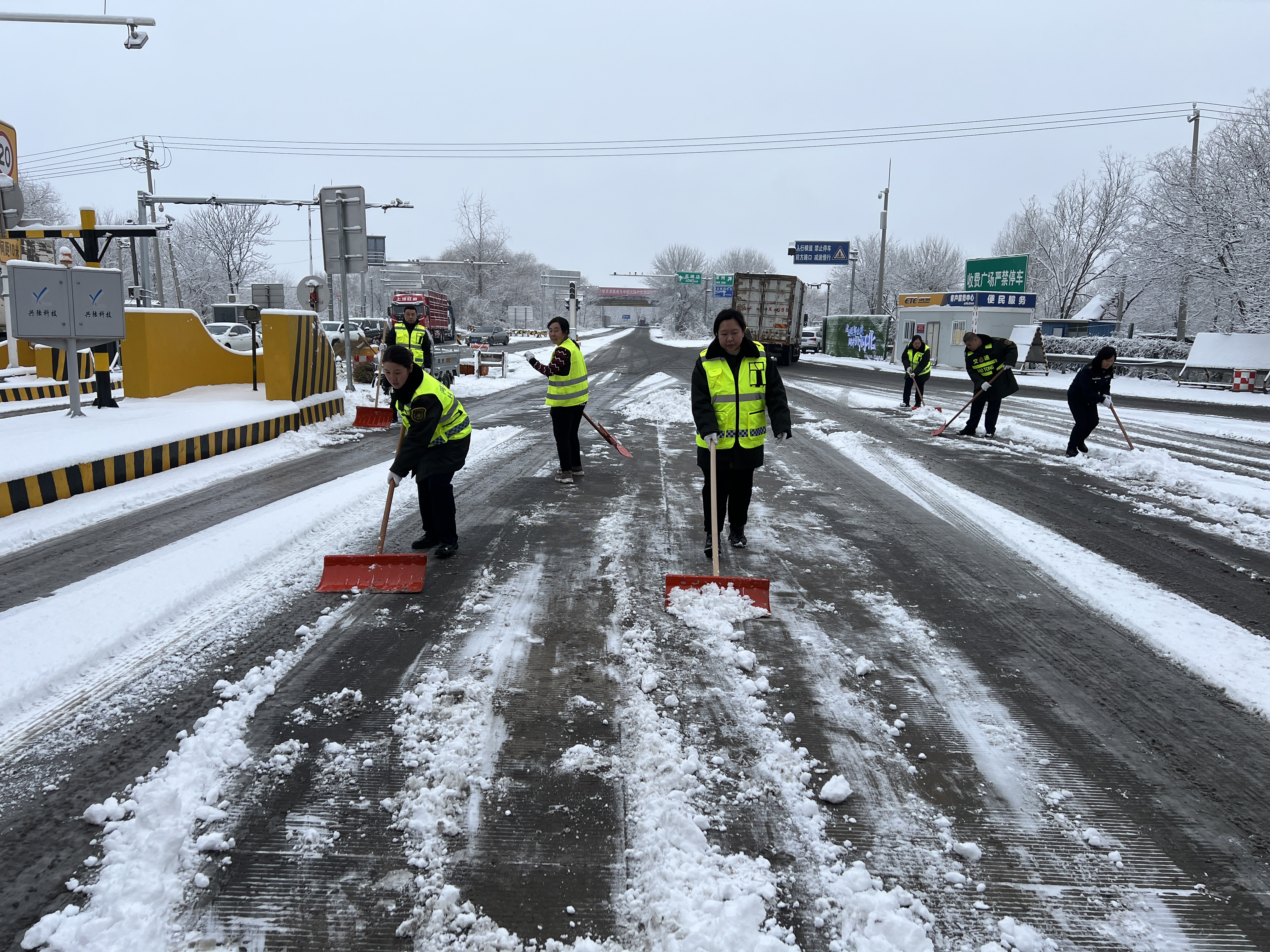 强化应急处置,做优除雪保畅。各收费站发现降雪立即组织人员,对内外广场和收费车道进行除雪,采取人工加机械相结合的方式,雪花不停,反复清扫,确保车辆安全通行,广场干净整洁。降雪期间,对永定河特大桥、广阳特大桥等重点桥梁、互通匝道、枢纽互通加宽段等进行重点撒布,除雪保畅工作有序推进。累计使用固态融雪剂55吨,车辆7台,为道路保畅筑起坚实屏障。