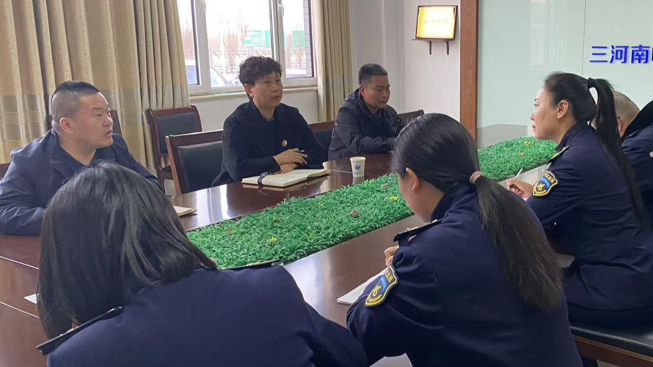 弓春燕一行首先来到收费广场,实地查看车辆通行情况,详细了解了当前的车流量以及收费任务的完成进度。对站区公示栏、廉洁文化室和党员活动室等重点区域展开细致检查。随后与职工召开座谈会,对三河南收费站各项工作给予高度肯定,并对当前工作重点提出具体要求。