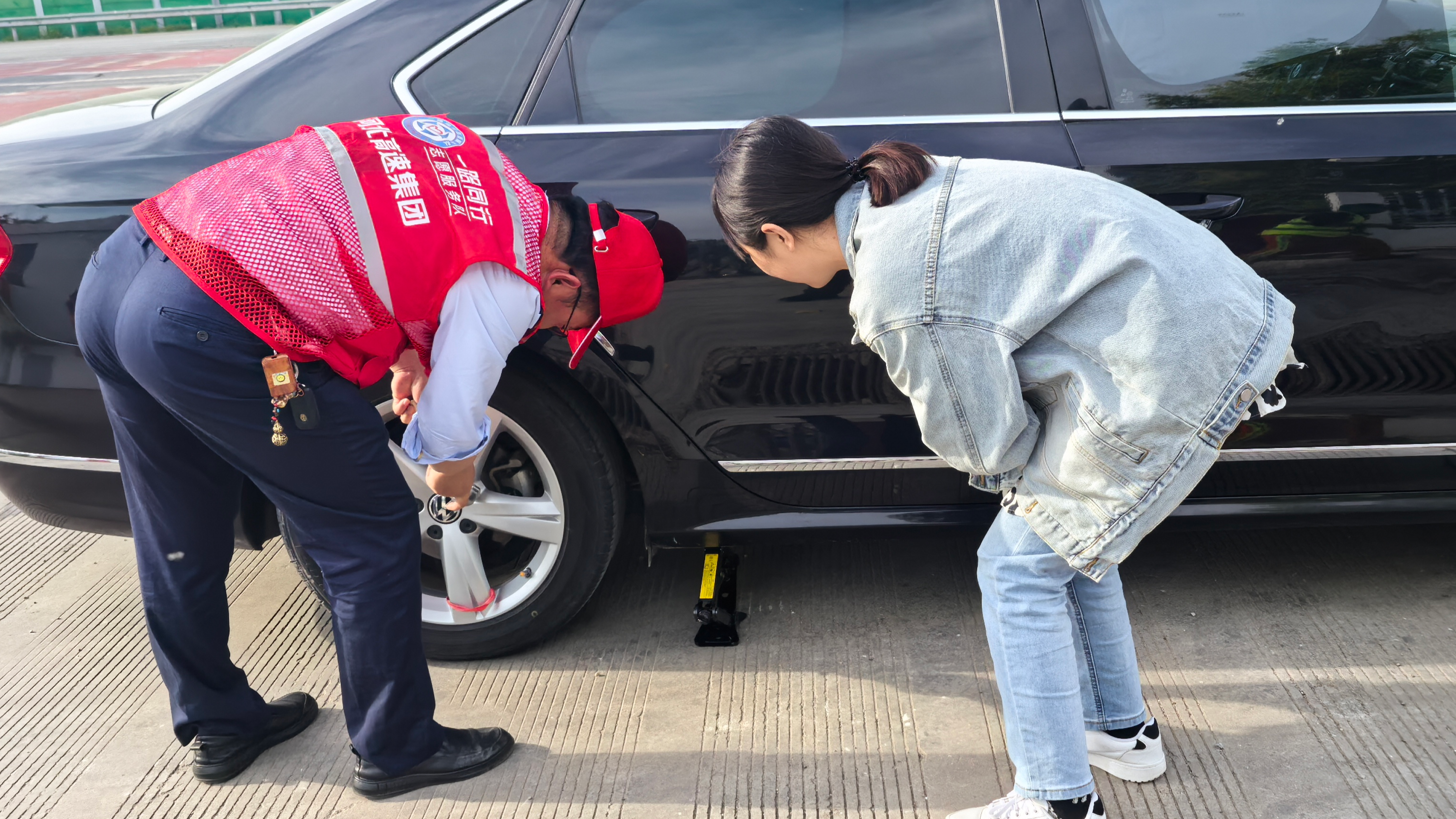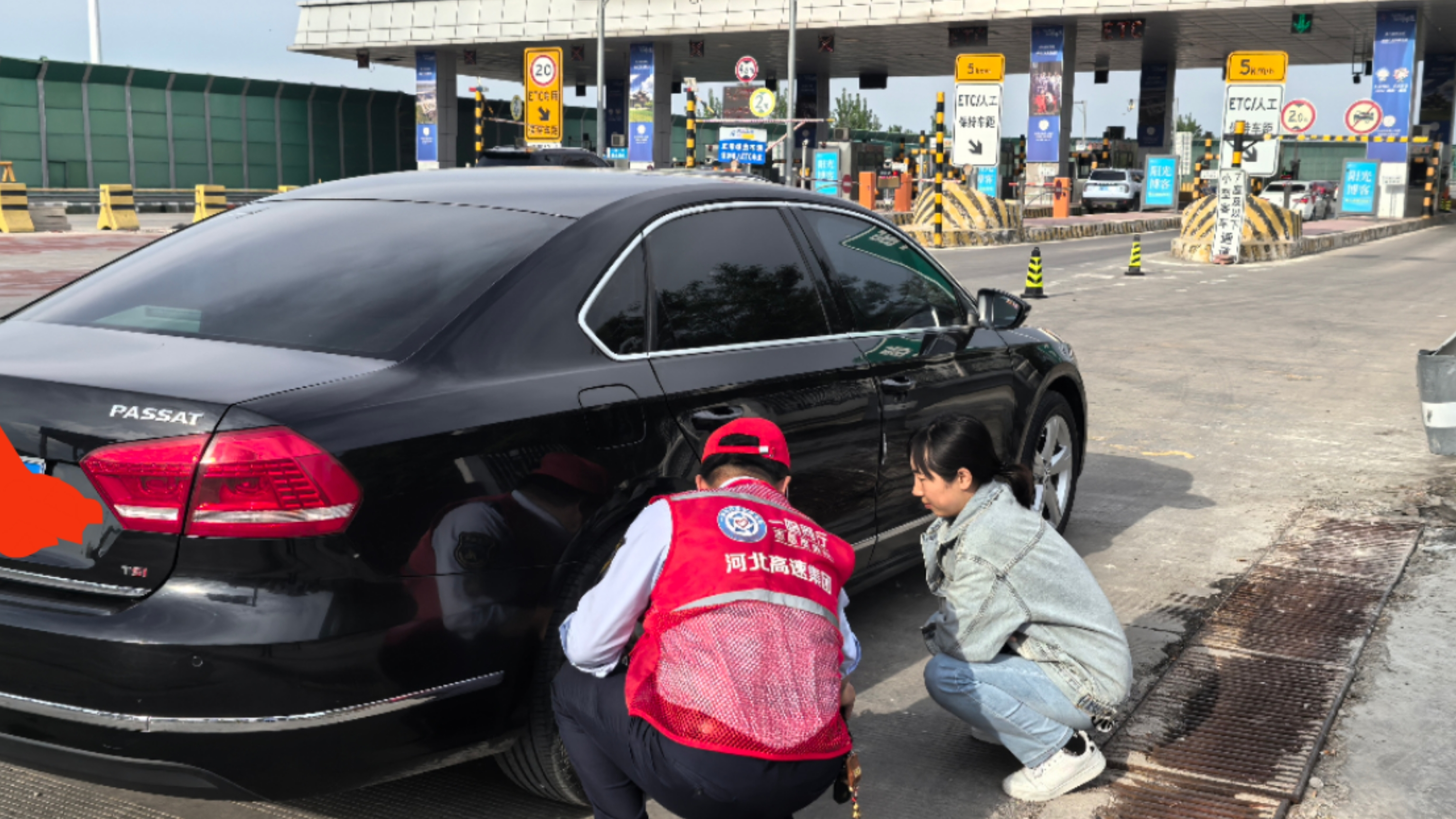 廊坊分公司燕郊西收费站热心换轮胎 暖心返程路