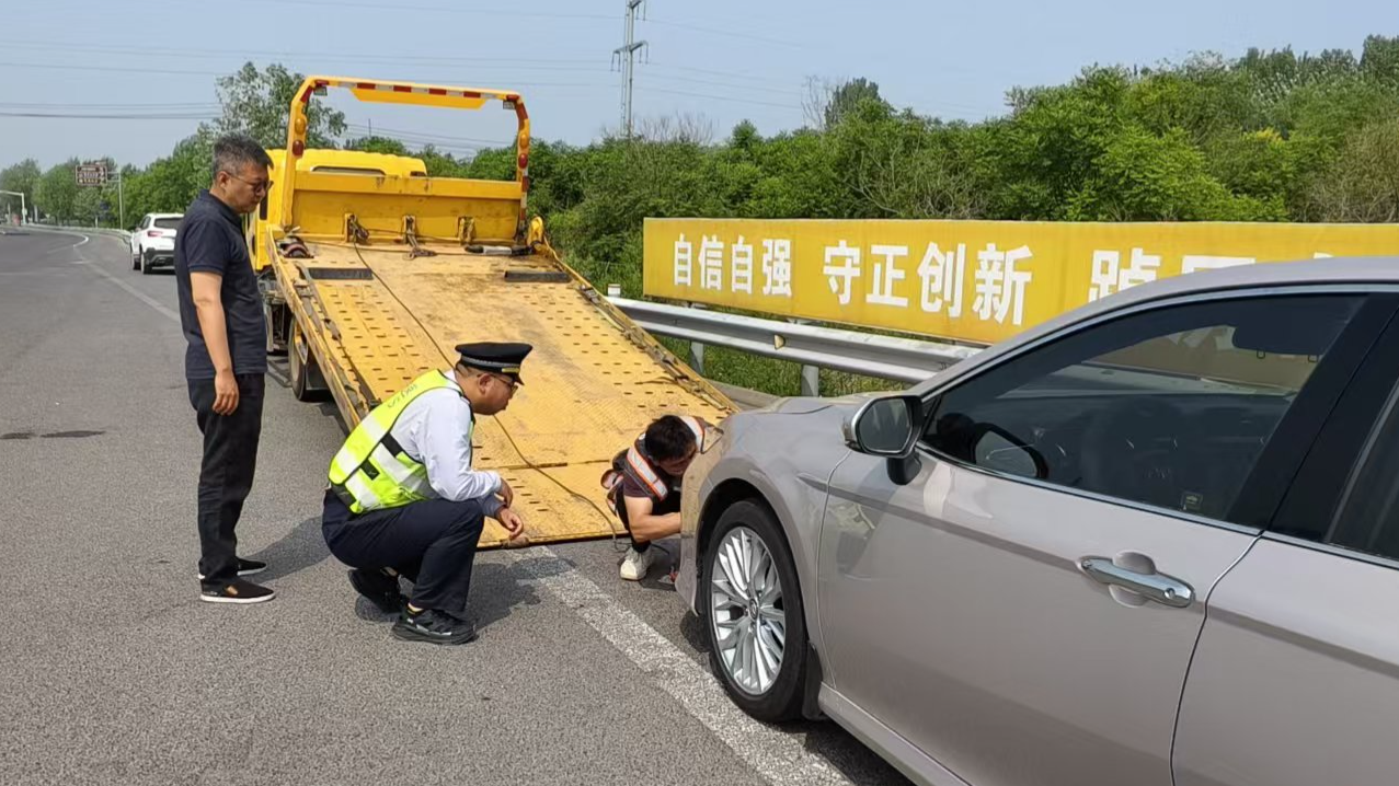 5月18日17时,一辆银色轿车在三河南收费站出口完成缴费后,突然熄火趴窝。司机反复尝试点火无果,焦急神色溢于言表。当班收费员主动询问情况,并迅速上报班长。