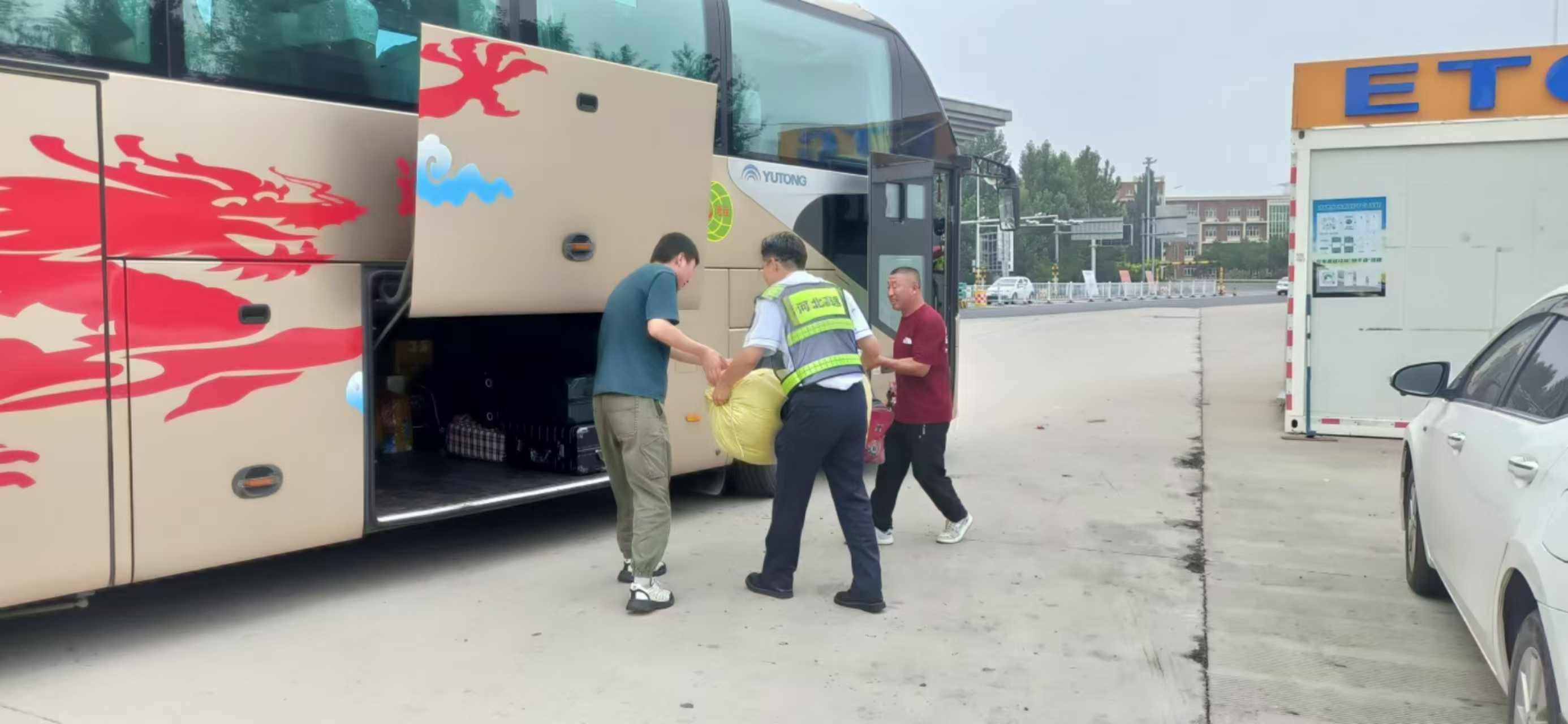 经过一番努力,返乡车辆联系好了。待车辆到达后,班长喊来疏导人员帮老人将行李放置在大巴车的行李仓内。并亲自扶老人上车,细心地为老人安排好座位,叮嘱司机途中照顾好老人。老人满是皱纹的脸上露出了感激的笑容,不停地说着“谢谢”。