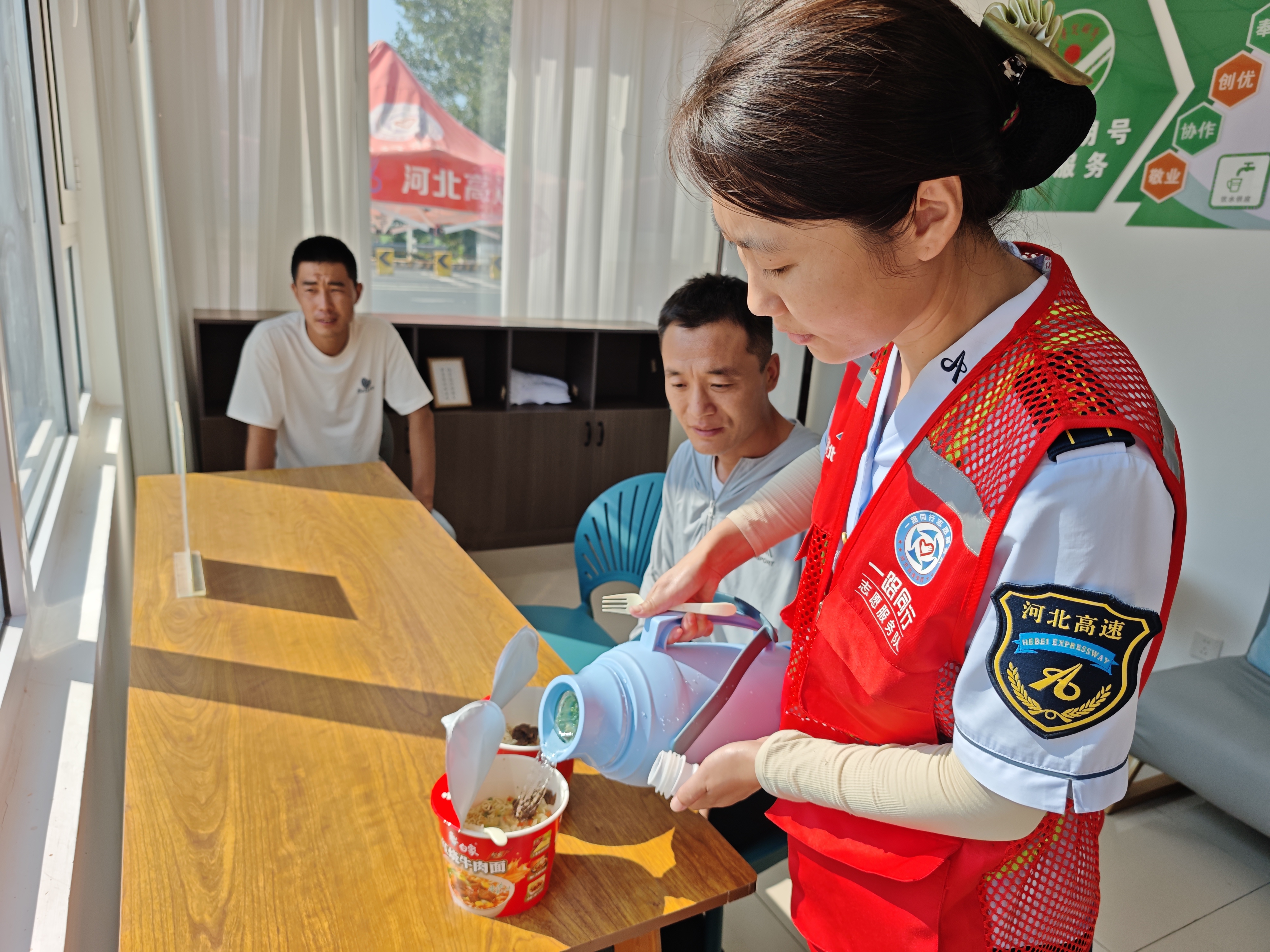 夏日的清晨或许闷热,但在固安南收费站,那碗热乎的泡面,像一阵清爽的风,吹走了等待的焦躁,为等车的辛勤务工人员带来了舒心和畅快。