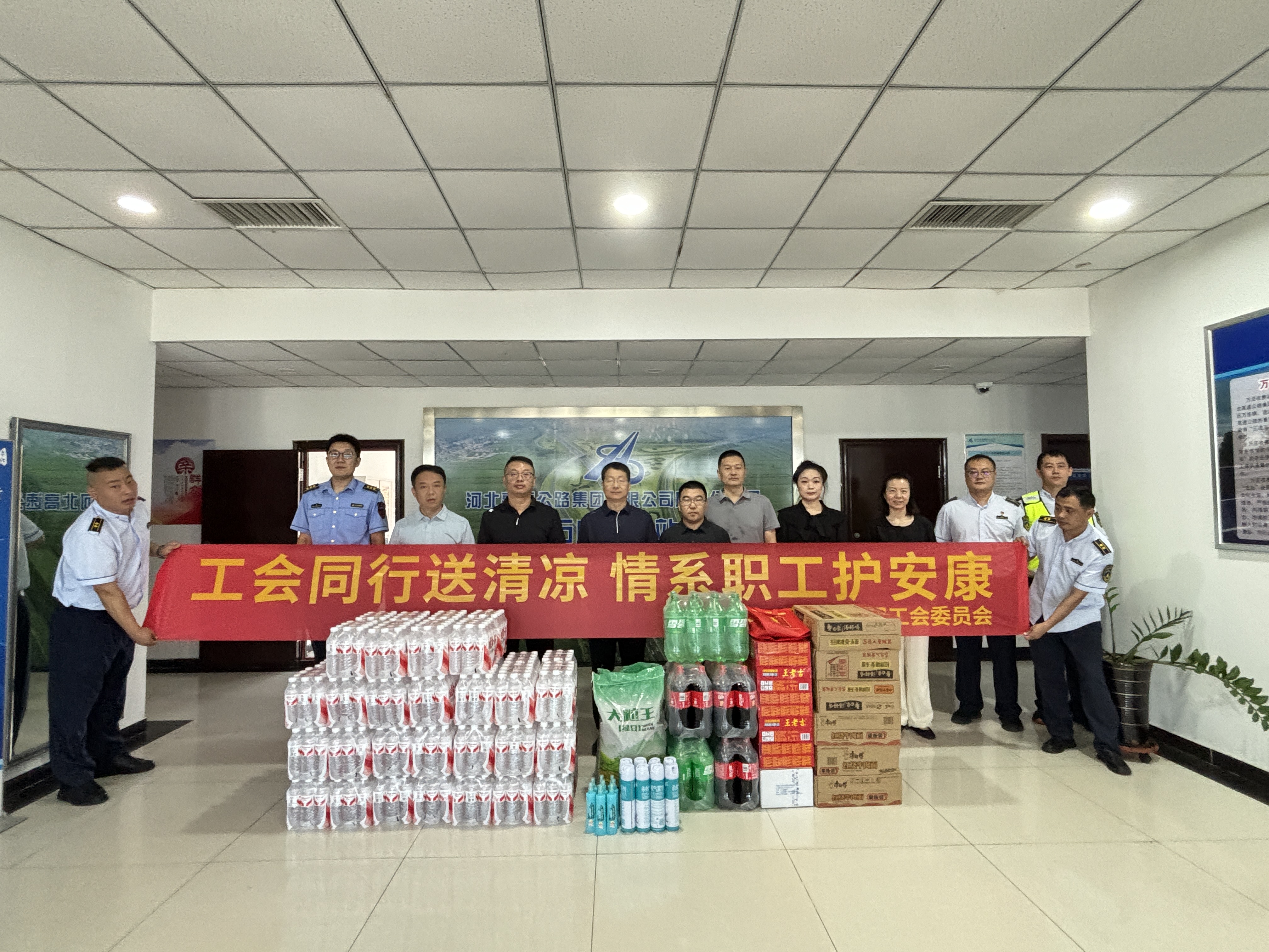总经理于水对奋战在一线的职工们坚守岗位的工作热情表达了肯定,并为他们送去了纯净水、方便面、绿豆等防暑降温用品。并仔细了解了值班情况、站口保通保畅、安全生产等情况,还叮嘱大家在做好工作的同时也要注意防暑降温,提高自我防护意识,确保自身健康和安全。