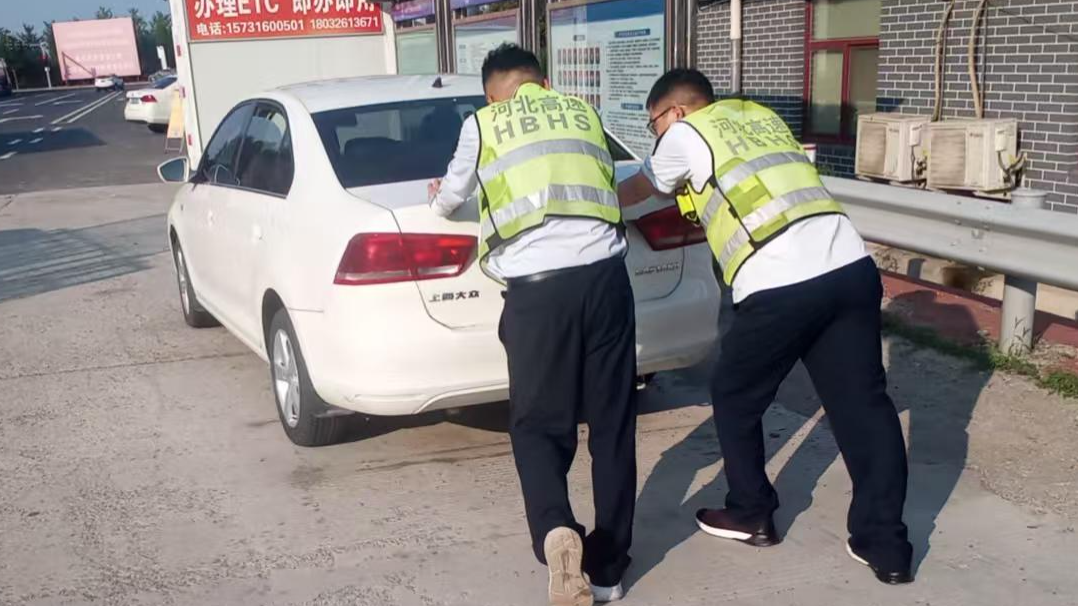 7月22日14时16分,香河西收费站出口车道内上演了一幕暖心场景。一辆小型轿车在完成缴费后,因突发故障突然熄火,停在车道中央无法启动。此时正值车流高峰,后方车辆迅速排起长队,情况紧急。