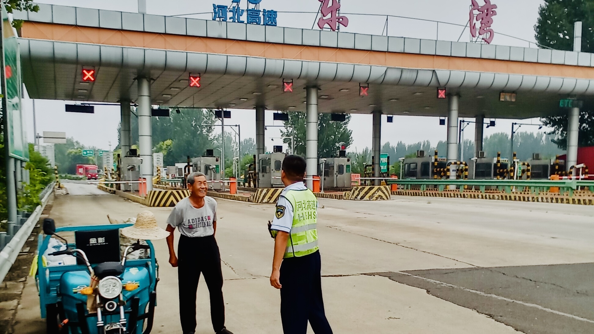 班长赶到后,将老人与车辆引导至安全岛阴凉处。老人面色通红,额头冒汗,双手紧攥车把。经了解,老人准备去邻村串亲戚,稀里糊涂就骑到了高速口。班长递上一瓶饮用水,老人连饮数口,呼吸逐渐平稳。班长拿来一张纸,用圆珠笔画出简易路线图:出站右转—第二个路口右转—过桥洞即到村口。他将纸折好,递给老人,又指了指太阳,示意老人注意防暑。老人点点头,推车走了两步,回头冲班长鞠了个躬,这才蹬着三轮慢慢离开。