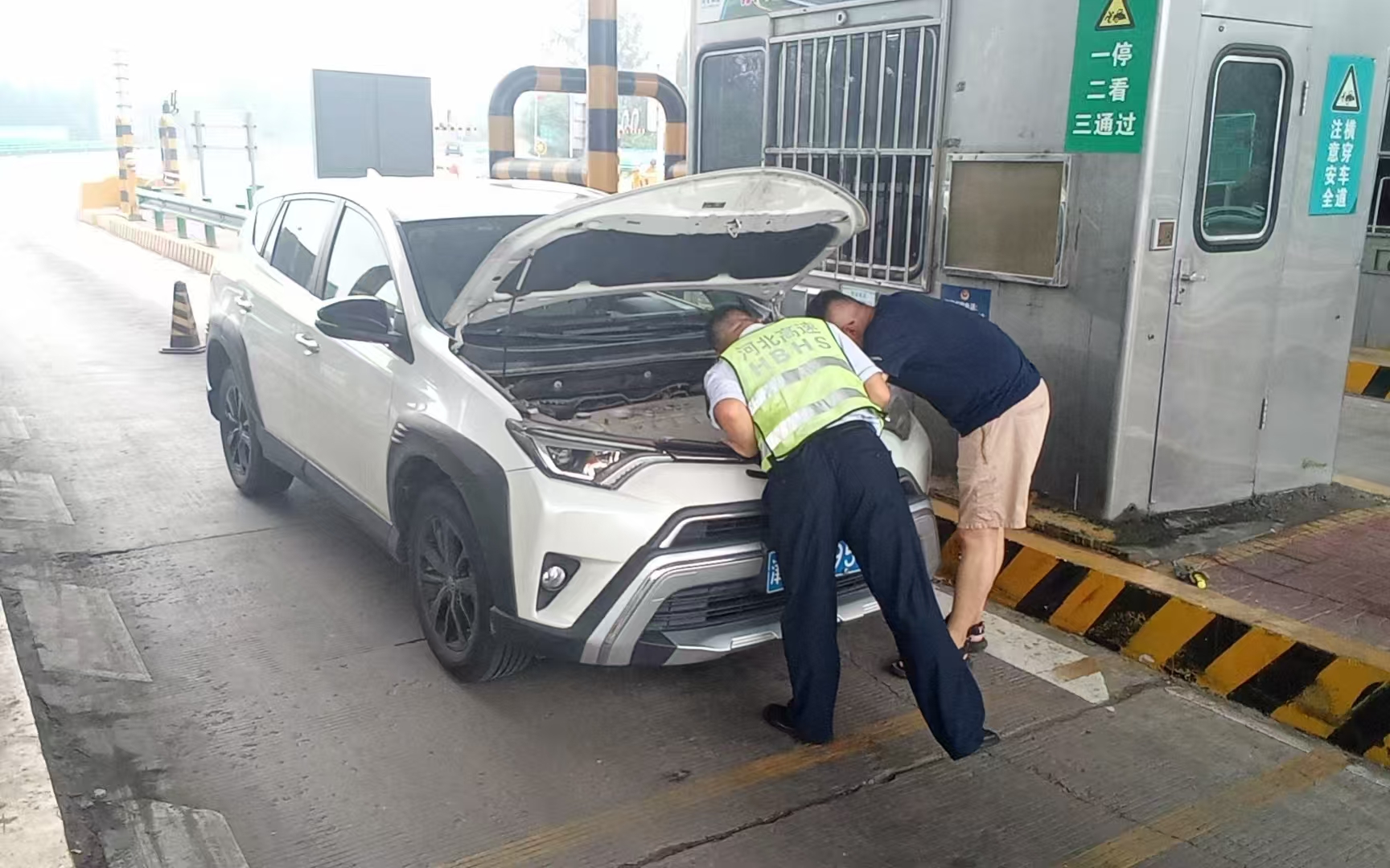 7月28日上午10时,固安东收费站一辆小型客车刚完成缴费,就突发故障“趴窝”无法启动。收费员金万磊发现后,第一时间呼喊备岗人员前来支援。