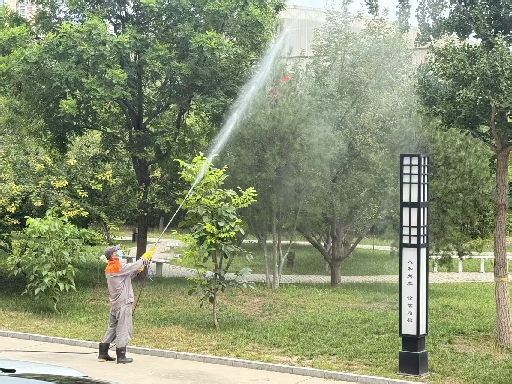 此次消杀工作针对总部院区各类绿植、绿化带等重点区域,通过科学配比药剂、专业设备喷洒的方式,全面覆盖可能滋生蚊虫、引发病虫害的角落,彻底从源头切断疾病传播链条,同时为苗木健康生长筑牢防护屏障。