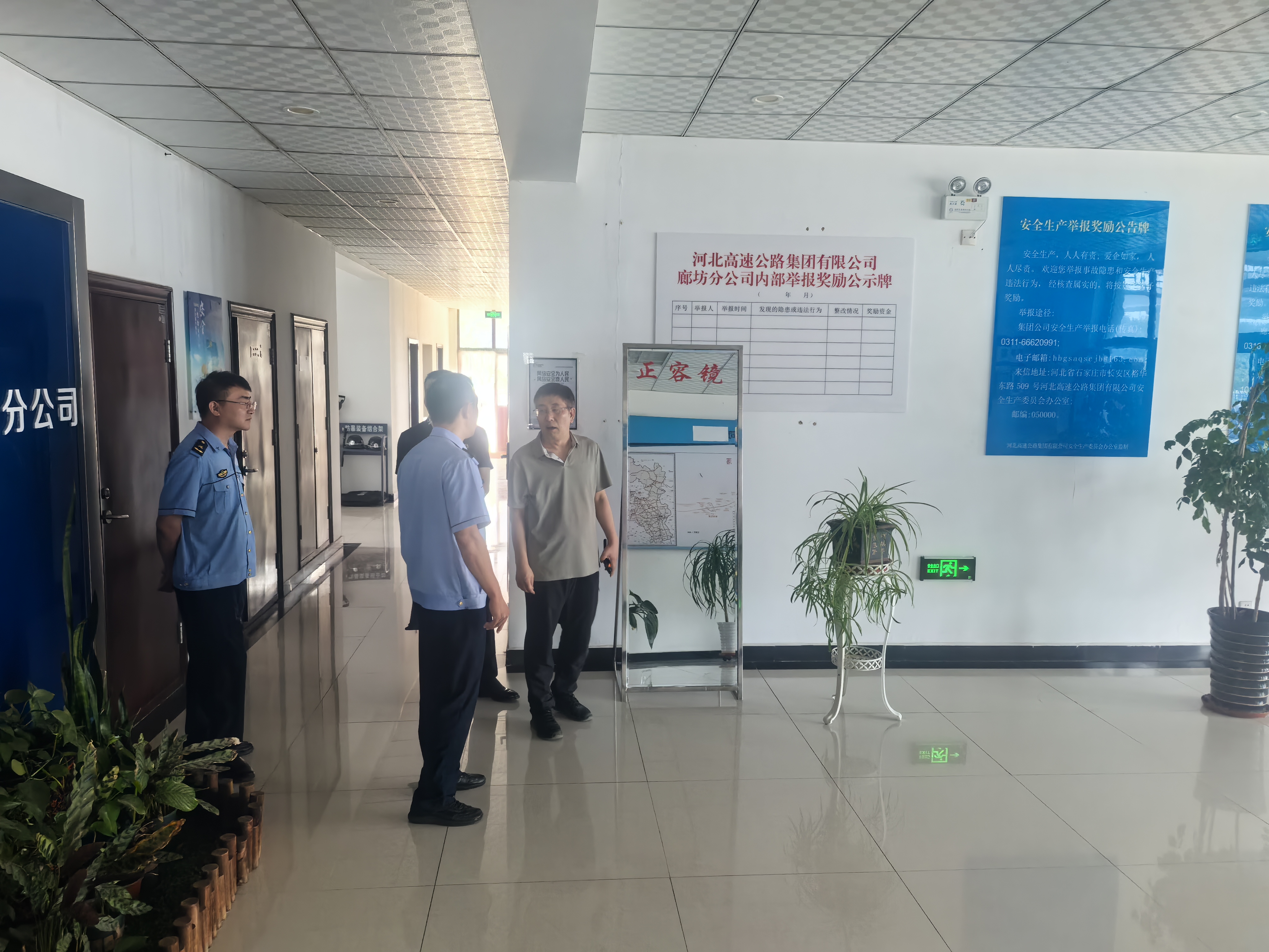8月12日中午,廊坊分公司纪委书记张强、副书记王海涛一行,前往大厂保通保畅应急大队,针对工作环境及防汛工作情况展开全面检查。此次检查旨在进一步强化安全生产意识,提升应急保障能力,确保辖区内道路安全畅通。