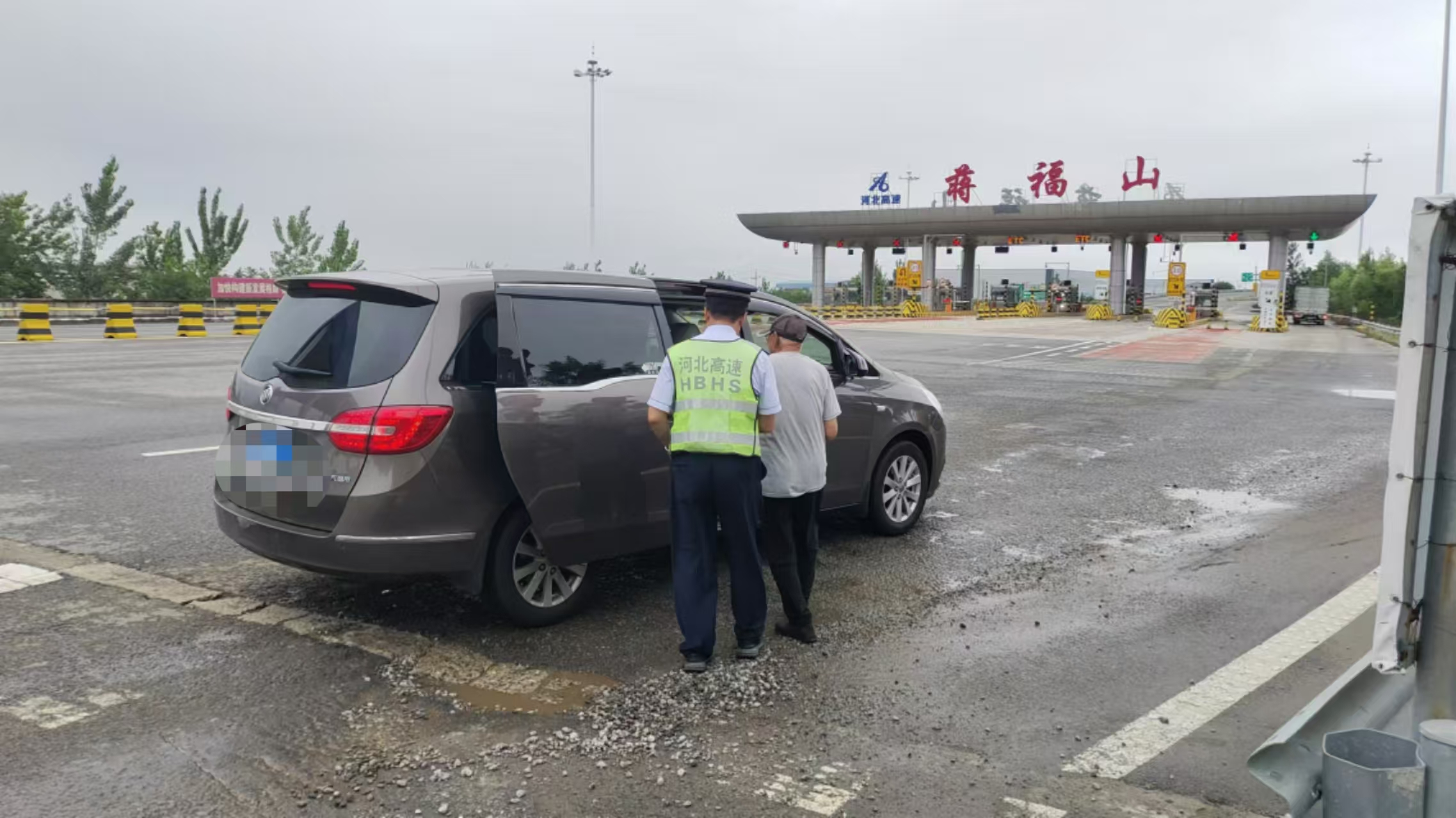 经了解,老人专程在此等候孙女,打算一同前往秦皇岛,可孙女仍在途中,老人又累又渴,正不知如何是好。班长一边轻声安抚,一边和值守人员小心翼翼搀扶老人前往收费站便民服务室。进入凉爽的服务室后,班长贴心倒来一杯温水,递到老人手中。随后,班长询问老人能否联系上孙女,拨通电话后与对方确认了抵达时间。得知孙女约20分钟后到达,老人紧绷的神情终于舒展。等待期间,班长陪老人拉家常,缓解其焦虑情绪,还不时望向收费口方向留意来车。