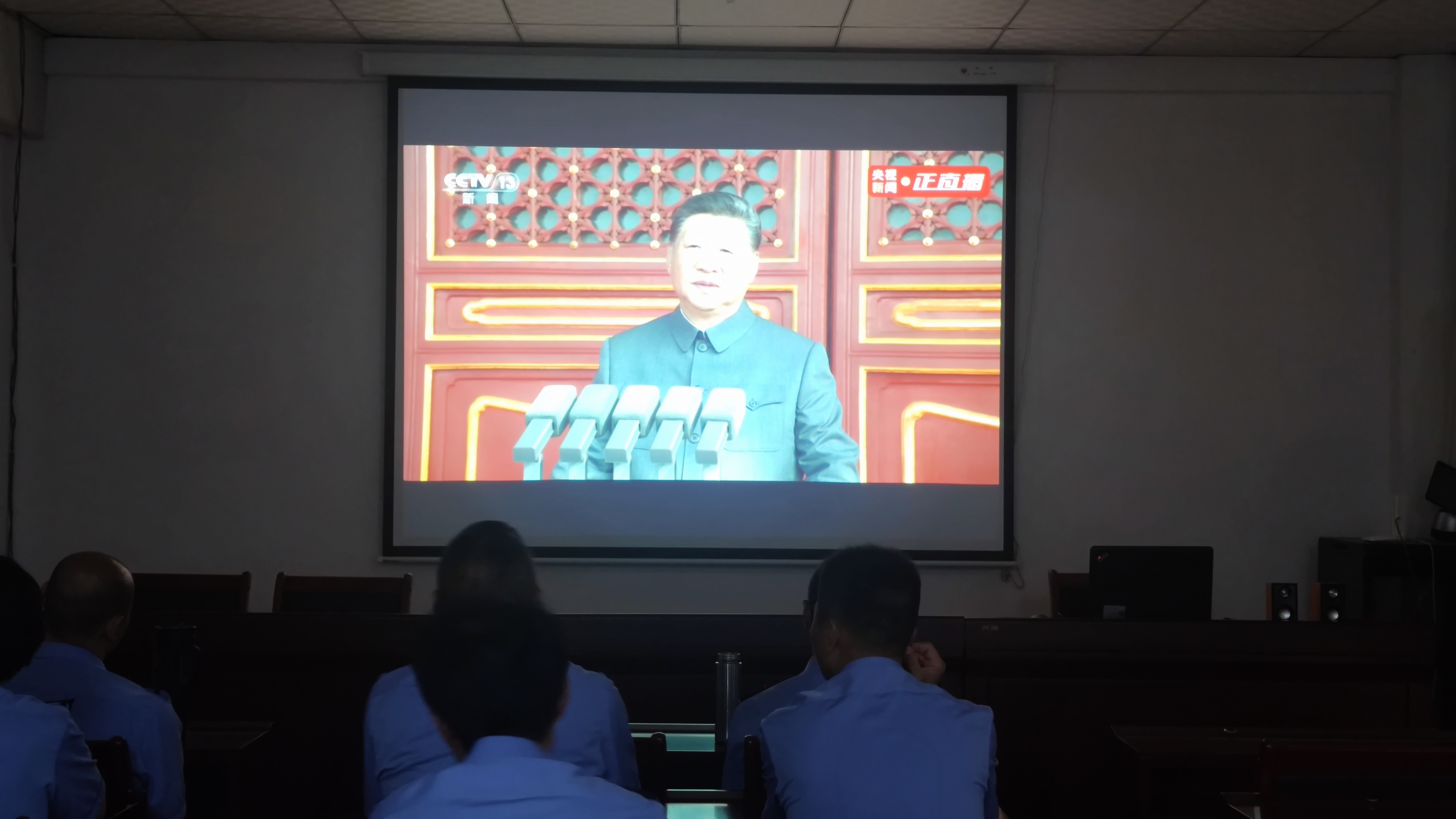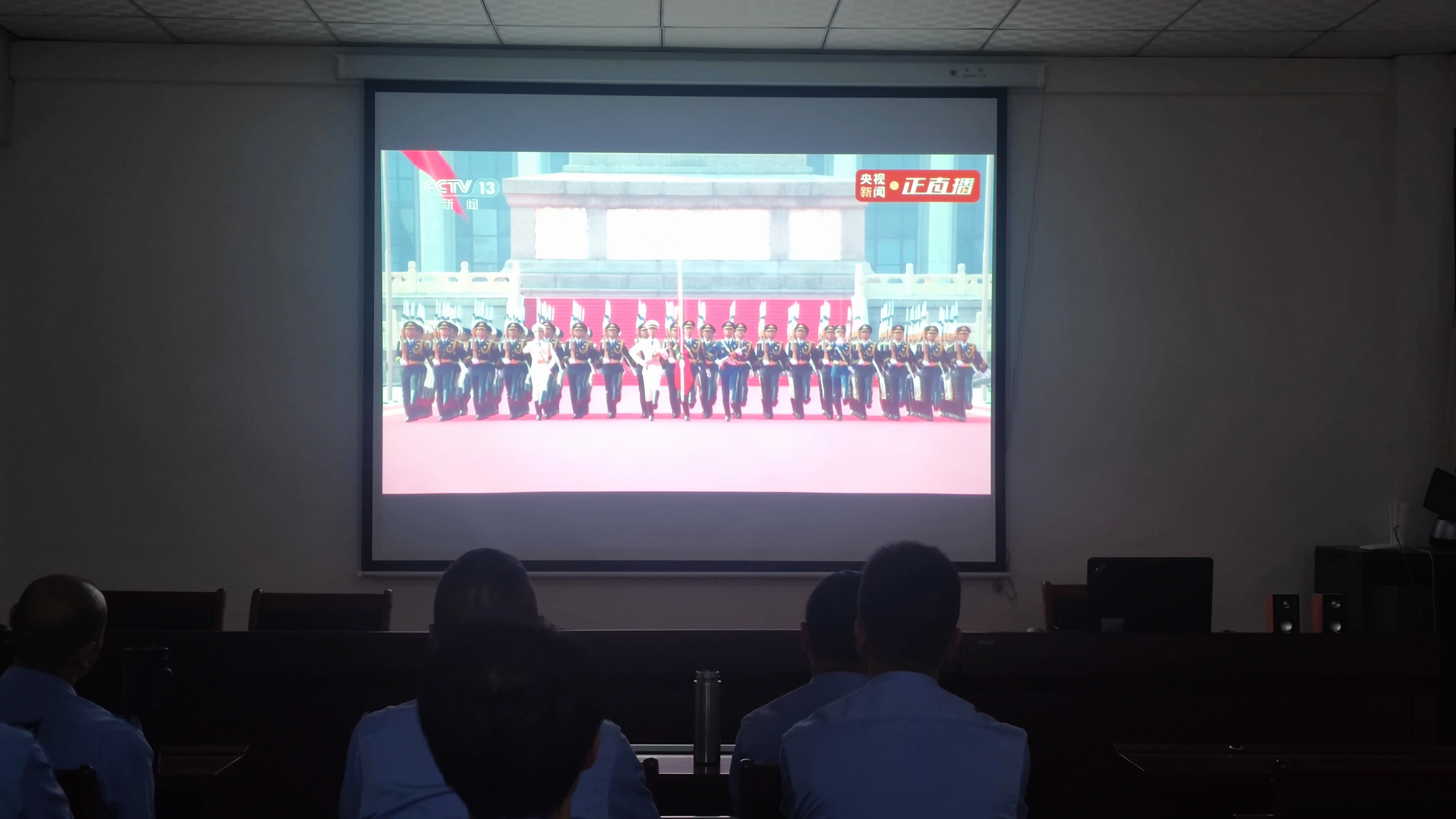 随后,阅兵仪式正式拉开帷幕。整齐划一的方阵、威武精良的装备、英姿飒爽的受阅部队,依次通过天安门广场,接受党和人民的检阅。看到一幕幕壮观的画面,会议室里不时响起热烈的掌声。队员们被阅兵仪式的宏大场面所震撼,更为祖国的强大感到无比自豪。