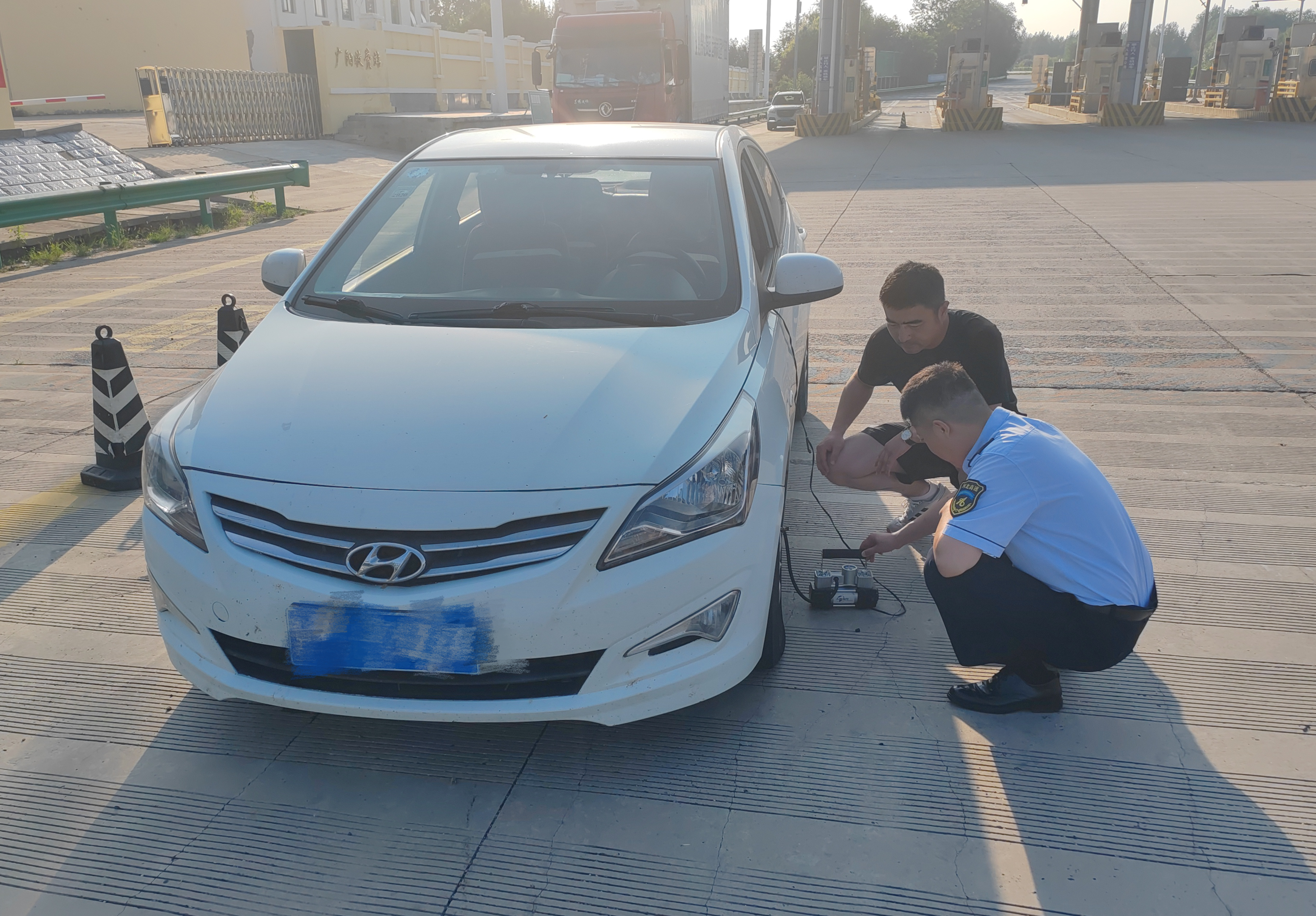 9月4日17时,一辆小型轿车在广阳收费站广场因右前轮胎压不足紧急靠边。当班班长发现后,立即上前查看,并迅速启动应急处置程序。