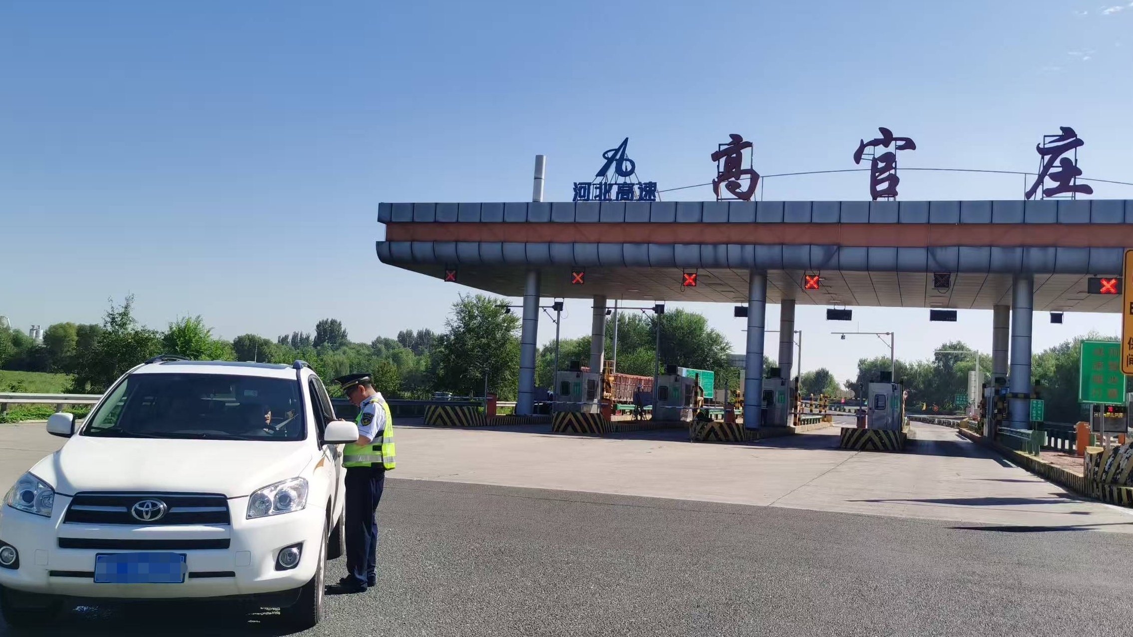 9月8日上午,一辆白色小客车从高官庄收费站105车道下道后,停靠在收费广场迟迟未驶离。当班疏导员发现后,立即上前了解情况。