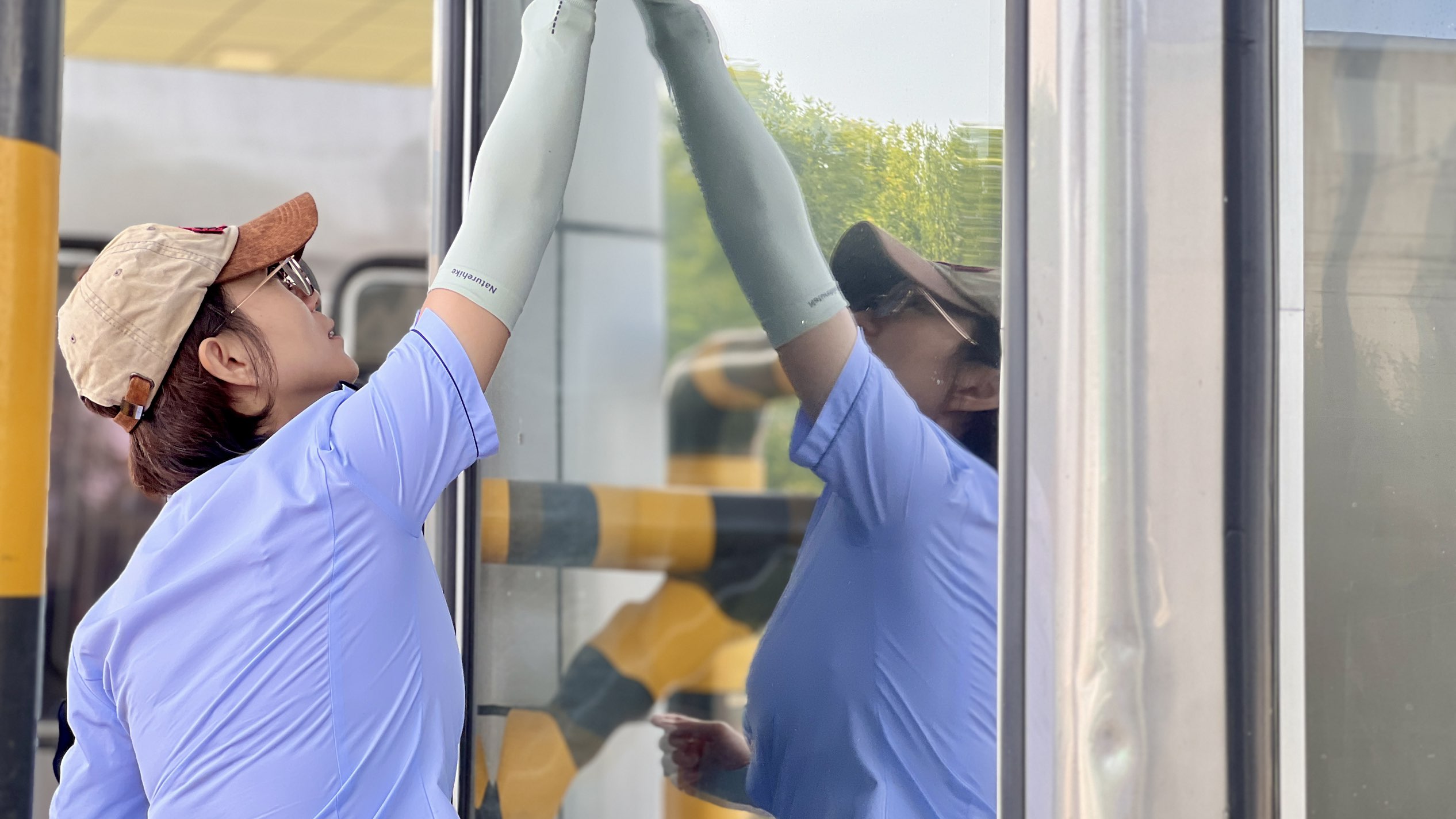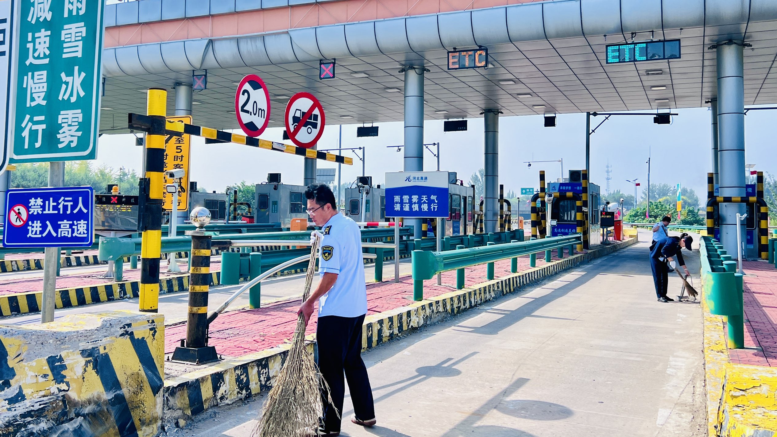 此次行动聚焦站区整体环境提升,对收费广场、车道、安全岛、收费岗亭以及周边区域进行了彻底清理。员工们分工协作,密切配合,利用高压水枪对车道淤泥、油污进行强力冲洗;细致擦拭收费岗亭内外窗玻璃、操作台,确保无尘明亮;全面清理安全岛头杂草、垃圾,并对防撞柱、标志标牌等设施进行维护擦拭,不放过任何卫生死角。经过集中整治,收费站环境面貌焕然一新,通行区域更加整洁宽敞。