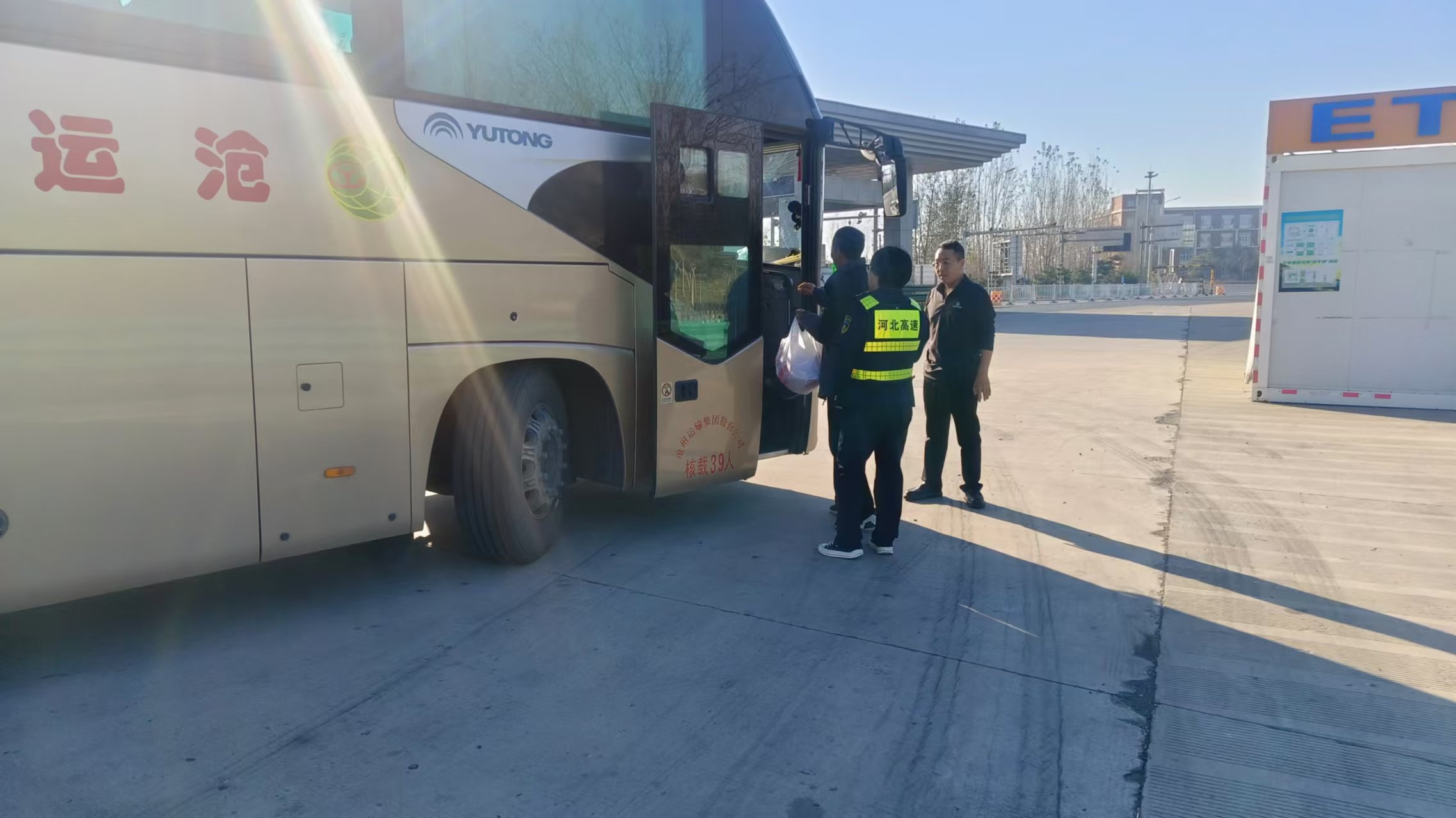 “师傅,带好您的行李,大巴车已经到达站口了。”11月22日上午,固安东收费站的收费员将在便民岗亭等车的路人安全送上大巴车,这是收费站“便民服务”的日常一幕。