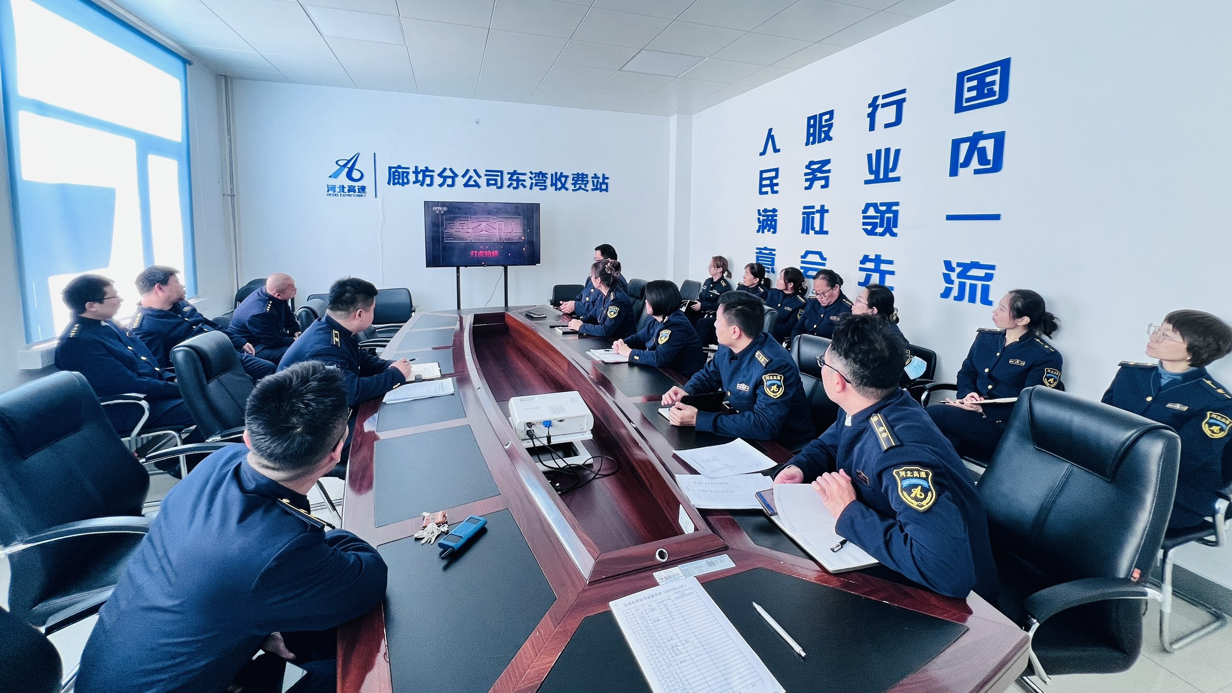 为强化廉洁教育,筑牢拒腐防变思想根基,近日,东湾收费站组织全体员工集中观看警示教育专题片《零容忍》第二集—打虎拍蝇,以典型案例敲响廉洁警钟,以深刻警示强化责任担当。