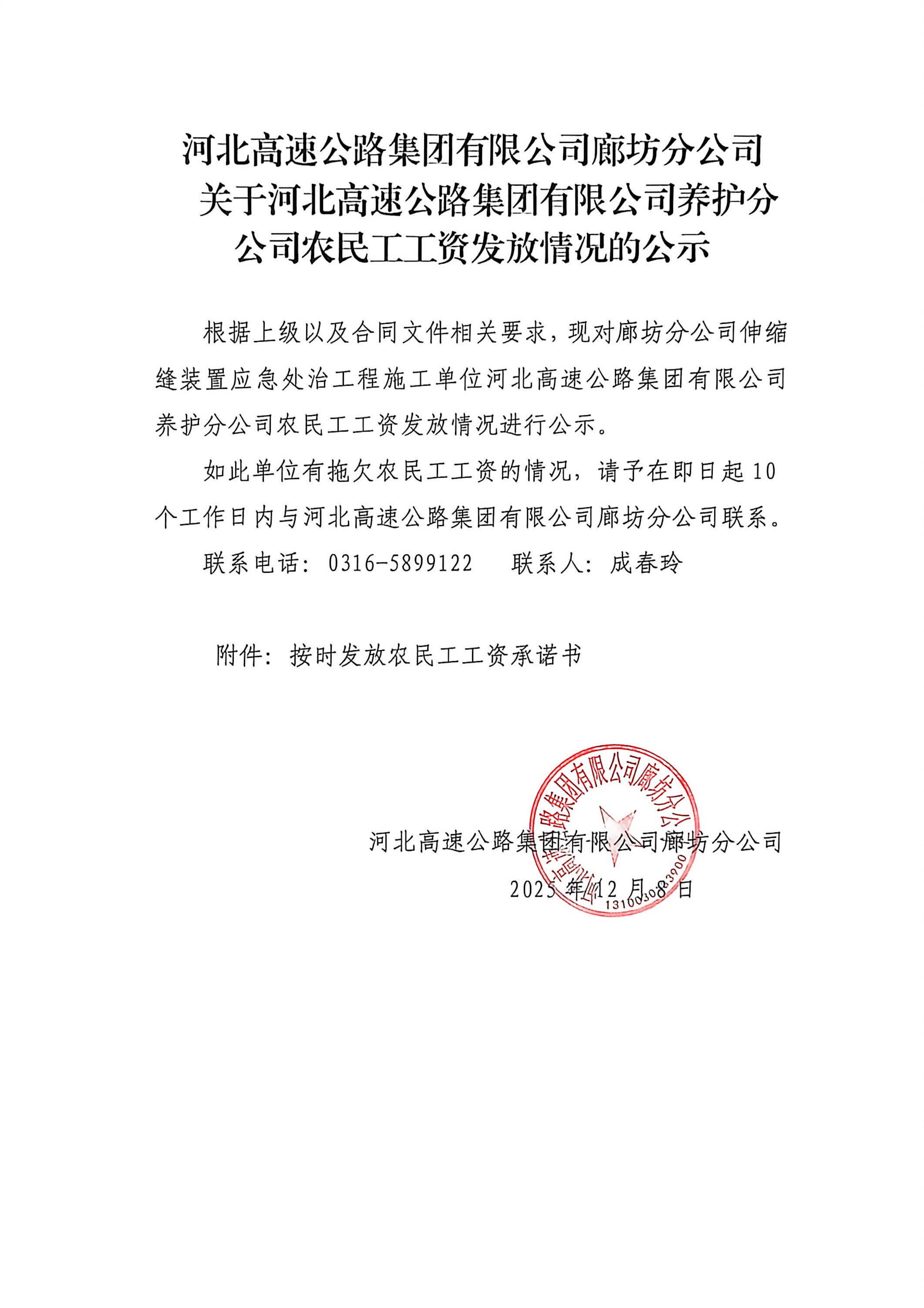 关于beats365官网在线平台养护分公司农民工工资发放情况的公示