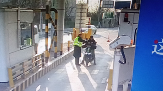12月11日16时左右,香河收费站入口处,当班收费班长正像往常一样巡查,远远就看到一辆电动车晃晃悠悠地朝着高速主线驶来,他立刻快步上前,挥手示意驾驶人靠边停车。