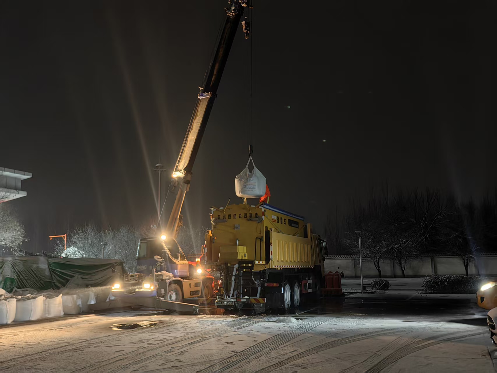 面对复杂的天气形势,广阳保通保畅应急大队闻令而动、迅速响应,第一时间启动除雪保畅应急预案。全体队员以雪为令、冲锋在前,开启24小时连夜奋战模式。在作业过程中,大队科学调配力量,累计投入除雪撒布车34台班,组织除雪作业人员150工日,消耗融雪剂230吨。针对桥梁、匝道、弯道等易结冰的重点路段,采取“机械除雪为主、人工清理为辅、融雪剂精准撒布”的作业方式,全力开展除雪保畅作业。