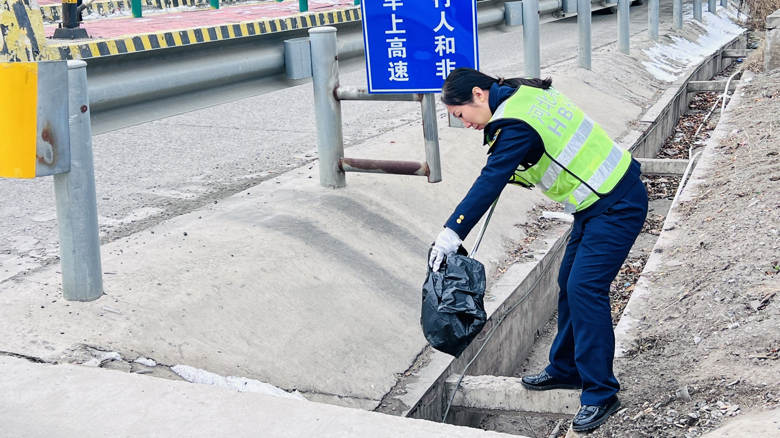 行动中,职工们不畏严寒,分工协作,积极投入到各项清洁工作中:有的手持扫帚清理车道,确保通行无阻;有的用温水仔细擦拭收费岗亭门窗、摄像头及信号灯,保持视野清晰;还有的着重对岛头、防撞柱、标志标牌等部位进行除尘除污,确保各类设施醒目、完好。通过全员努力,收费站环境在严寒中依然保持整洁有序,为往来车辆提供了温暖而畅通的出行体验。
