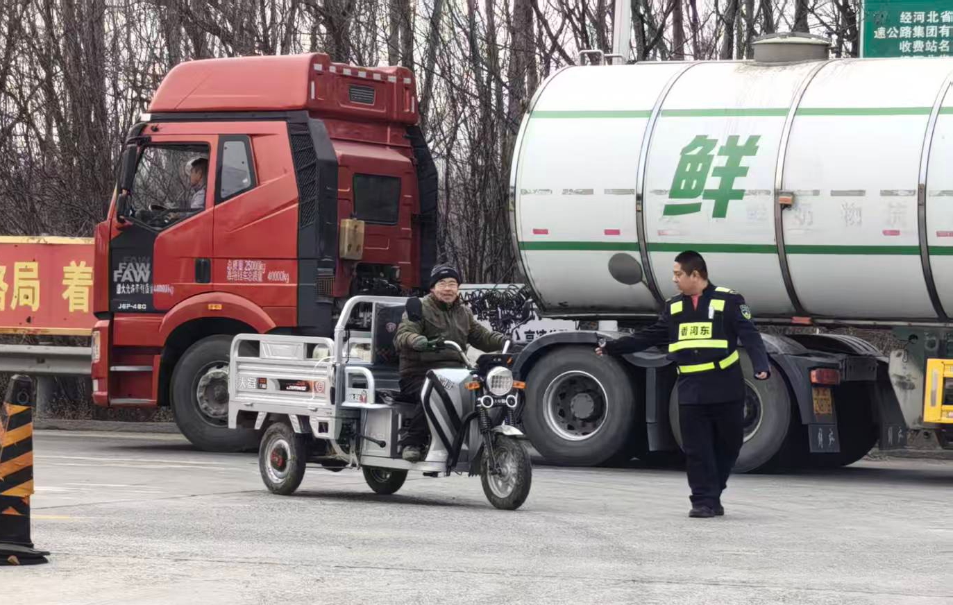 香河东收费站收费班长凭借高度的责任心与耐心,成功拦截并安全劝返一名驾驶三轮车误入高速的老人,用实际行动筑牢道路安全防线。