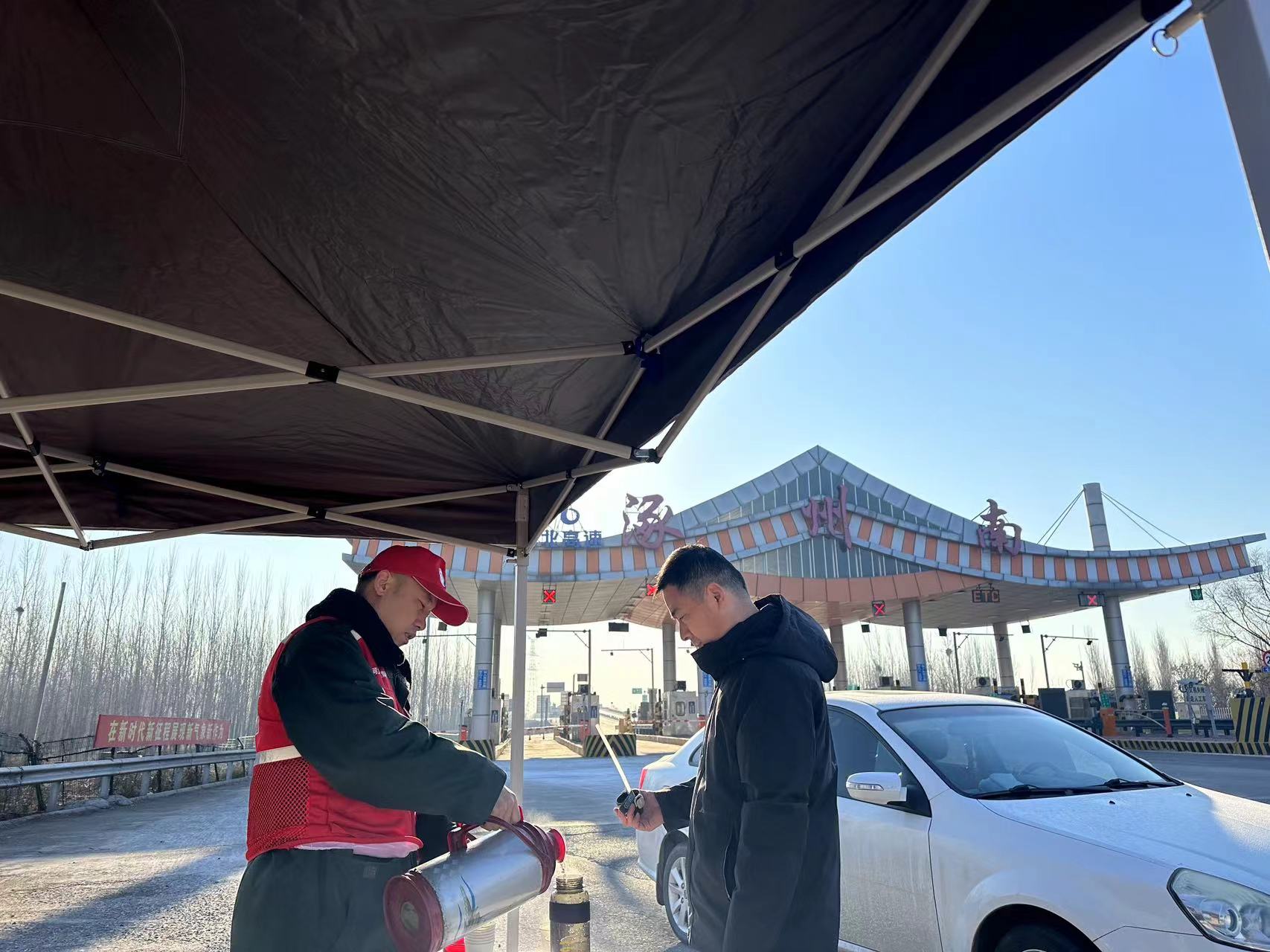 元旦期间,涿州南收费站广场上,一抹抹鲜亮的“志愿红”,成为冬日高速路上最温暖的风景线。为保障过往司乘度过温馨便捷的佳节,收费站精心组织开展“一路同行”志愿服务活动,用贴心举措传递高速温情。