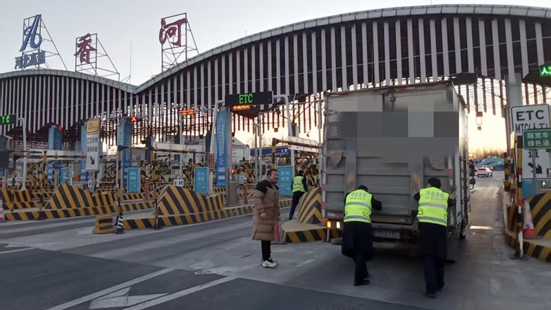 1月13日,一辆厢式货车行驶至香河收费站车道前时突然熄火,司机多次尝试启动车辆均未成功,只得向收费站工作人员求助。