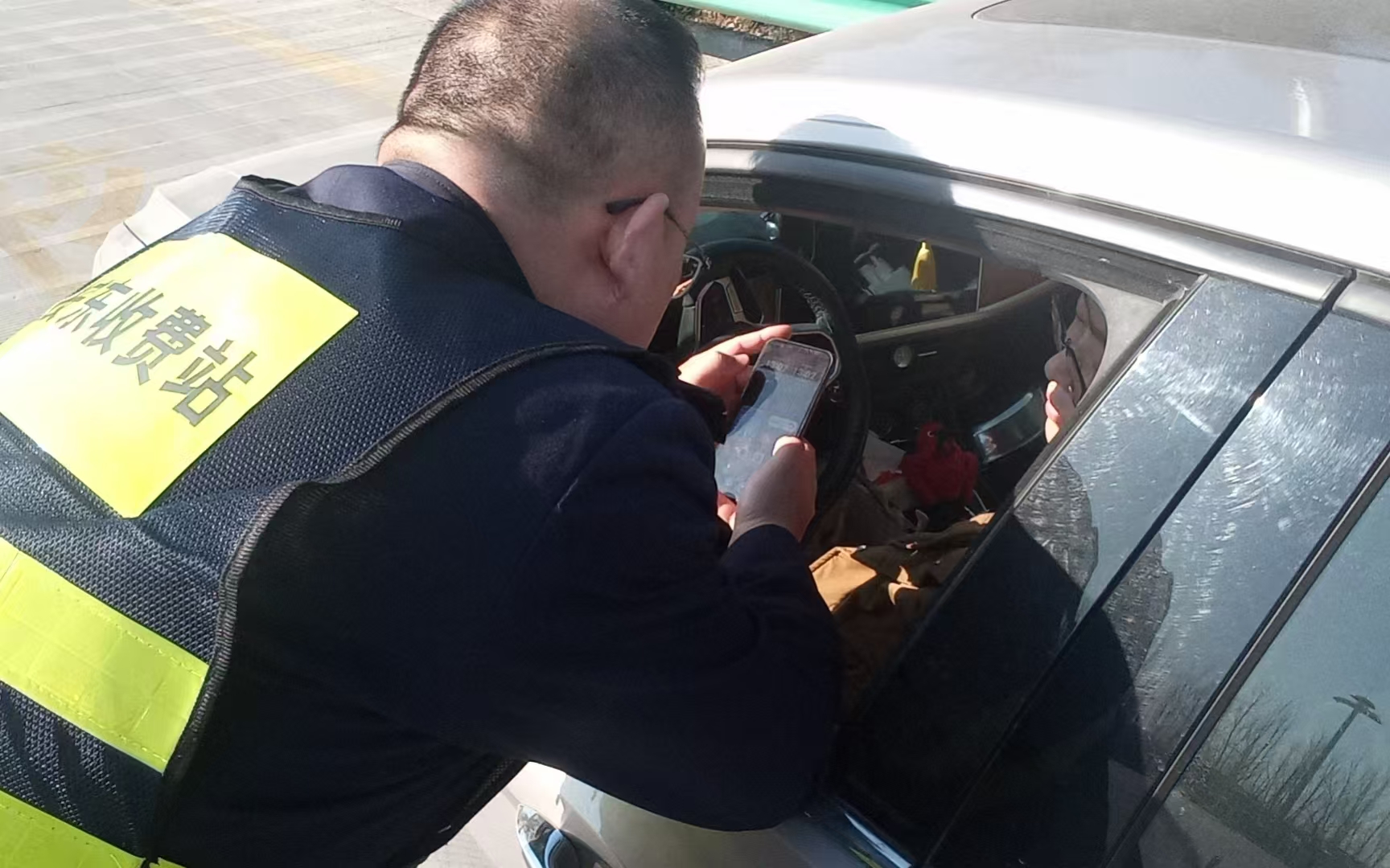 彼时正值车流驶入高峰,为避免影响车道通行效率,收费员当机立断,一边引导车辆驶离收费车道,停靠至广场安全区域,一边第一时间通知收费班长前往支援。收费班长抵达现场后,耐心指导司机通过“冀e行”小程序办理电子发票开具业务。过程中,司机提及此前从河北保定驾车至天津下高速时,遇到了电子发票无法开具的问题。班长耐心向司机解释:电子发票开具需以驶出地收费站所属省份的相关规定为准,天津路段的发票开具事宜,需咨询当地高速收费站;而在河北省内高速路段下高速的车辆,均可通过“冀e行”小程序顺利开具电子发票。
