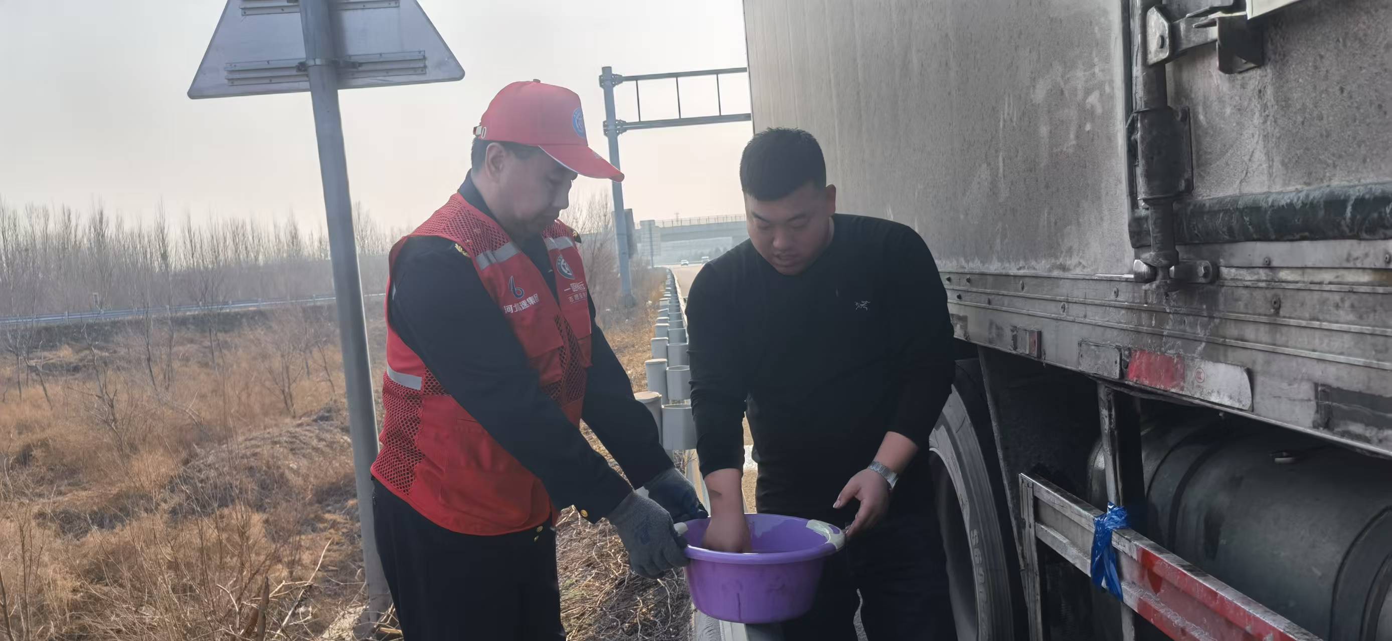 3月11日15时30分,广阳保通保畅应急大队队员刘伟科、吕清海巡查至首都环线高速密云方向K225+300公里处时,发现一辆货车停靠在应急车道,一名男子手提油桶,神色焦急地朝他们跑来。