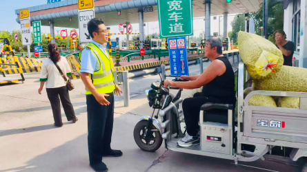 8月29日下午,东湾收费站入口,一位老人骑着电动三轮车径直朝高速驶来。当班班长眼疾手快,一把拦下。[详细]