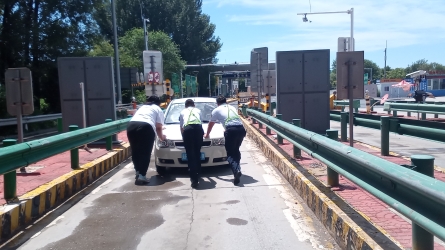 7月28日上午10时,固安东收费站一辆小型客车刚完成缴费,就突发故障“趴窝”无法启动。收费员金万磊发现后,第一时间呼喊备岗人员前来支援。[详细]