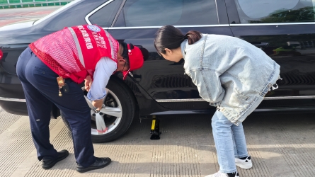 5月25日下午,一辆小轿车驶入东湾收费站入口广场,突然减速停在原地并亮起双闪警示灯。工作人员上前询问后得知,该车前轮胎已经完全亏气,无法正常行驶。[详细]