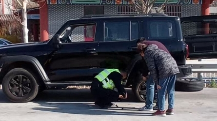 4月24日下午3时许,齐心庄收费站入口广场处,一辆白色SUV车辆因右前轮爆胎滞留在车道旁。[详细]