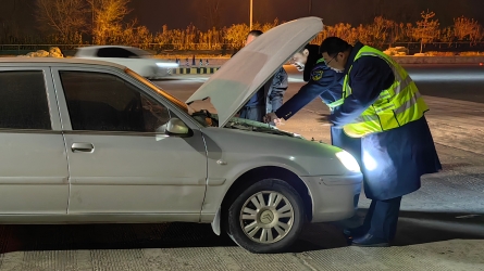 1月31日夜间,广阳收费站收费班长在车道巡检时,发现一辆家用轿车行至道闸前突发故障熄火,车主面露焦急。[详细]
