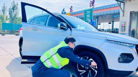 10月3日上午10点,一辆小客车在行驶中轮胎漏气爆胎,滞留在燕郊西收费站外广场,收费站工作人员发现后及时伸出援手,获车主点赞。[详细]