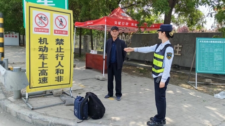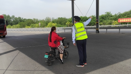 5月4日清晨,疏导员发现一位行人背着行囊欲逆行走上高速。察觉到这一危险状况后,疏导员迅速上前进行阻止。 [详细]