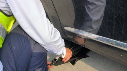 2024年4月26日下午5点30分,一辆黑色客车在蒋福山收费站收费广场入口处缓缓停靠,当班班长发现后立即上前询问情况,司机称自己正准备上高速突然听见胎压监测预警,下车检查后轮胎上扎了一个大钉子。[详细]