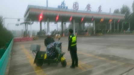 一辆三轮摩的突然停靠在香河东收费站入口车道附近,这一异常情况立刻引起了收费员的注意。[详细]