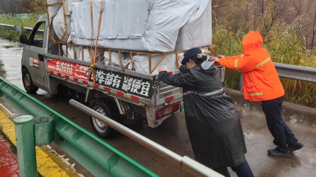 11月7日中午,小雨连绵,高官庄收费站出口匝道上,一辆纯电小型货车在下高速转弯时突然因亏电“瘫”在雨中弯道,司机师傅望着湿滑的路面和后方隐约的车流,急得手足无措。[详细]