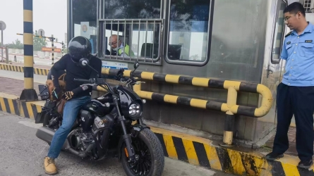 2024年7月21日11点25分,一辆未悬挂车牌的摩托车在蒋福山收费站下道时,企图利用车辆速度快和车身小的特点,进行“溜边”逃费下高速,此时站稽核人员发现后,急忙大声叫停摩托停车,并迅速跑过去进行拦截。[详细]