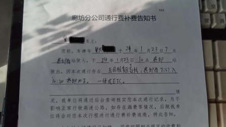 2024年1月23日上午11时许,一辆车牌为冀RE的小型客车驶入燕郊收费站104车道,读卡后系统提示路径异常,计费金额为1元。[详细]